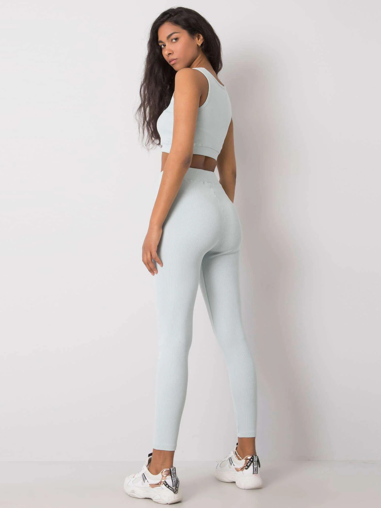 FOR FITNESS Světle modrá žebrovaná sportovní souprava.