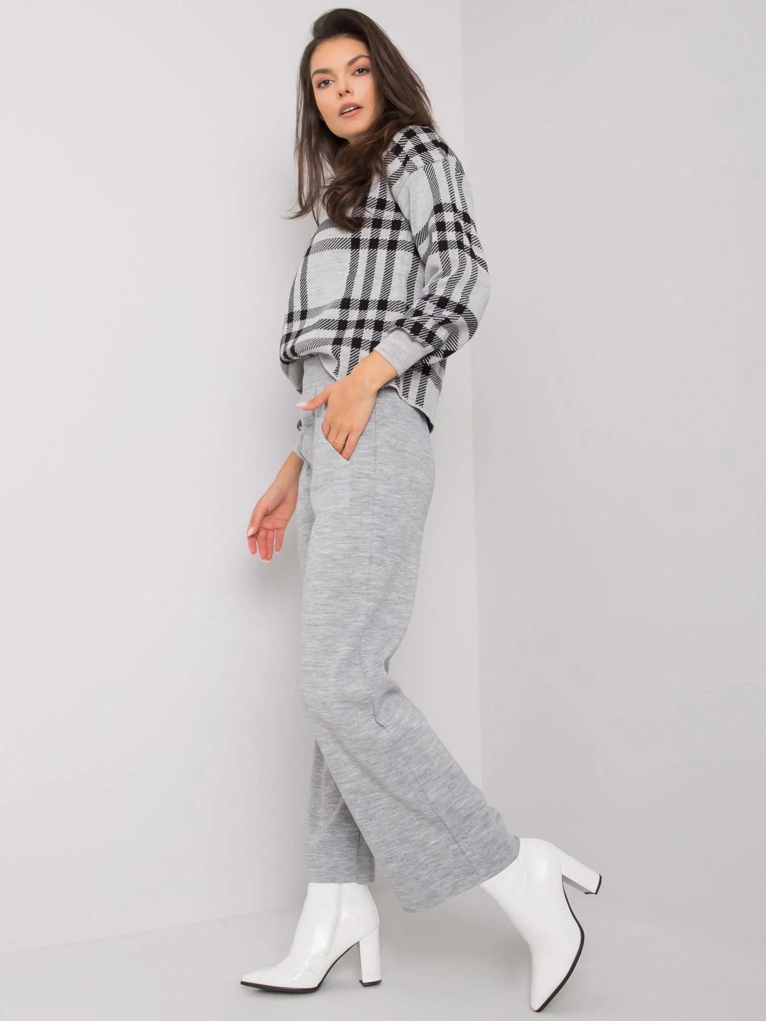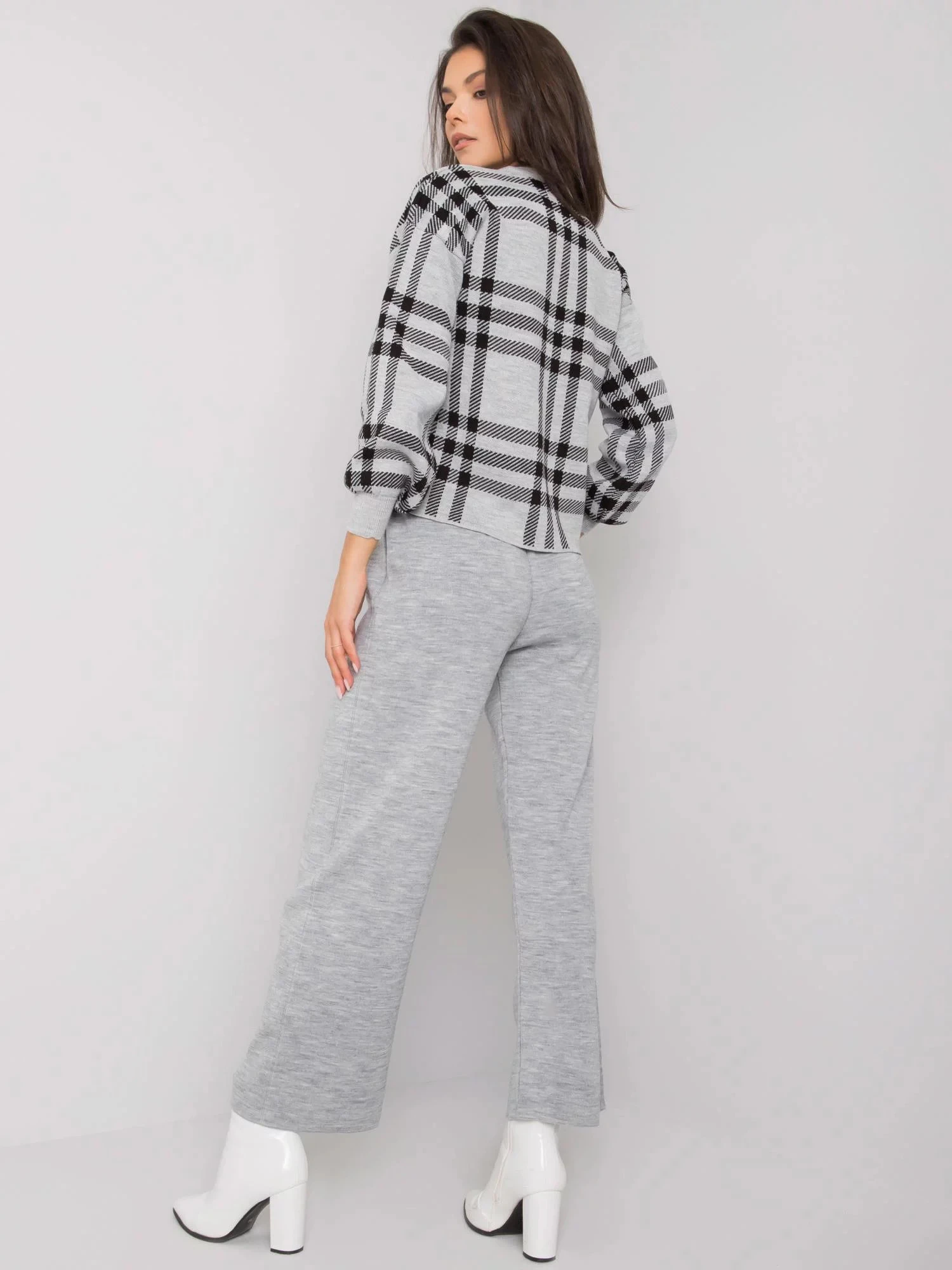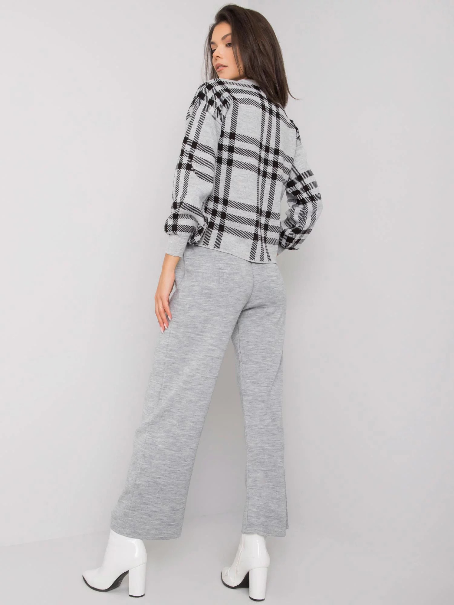 Šedá pletená souprava.