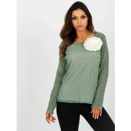 Světle zelená a béžová dvoudílná společenská halenka s broží .