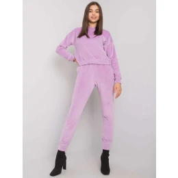 Fialová dvoudílná dámská velurová souprava.