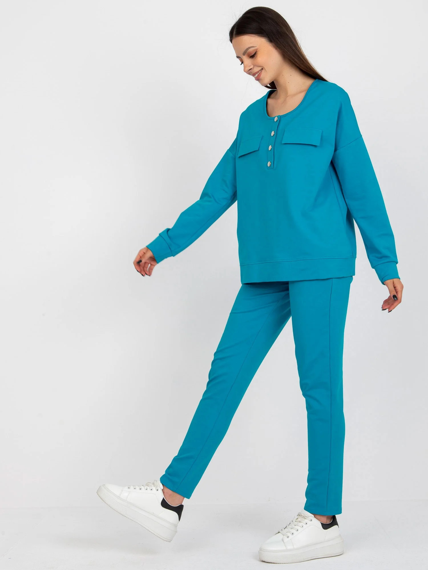 Modrá bavlněná souprava pro volný čas .