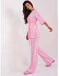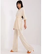 Rozměry soupravy ve velikosti S/M měřené na plocho: šířka halenky v podpaží - 60 cm, délka rukávů - 40 cm, délka halenky - 78 cm, šířka kalhot v pase - 32 cm, výška pasu - 33 cm, délka kalhot - 114 cm.