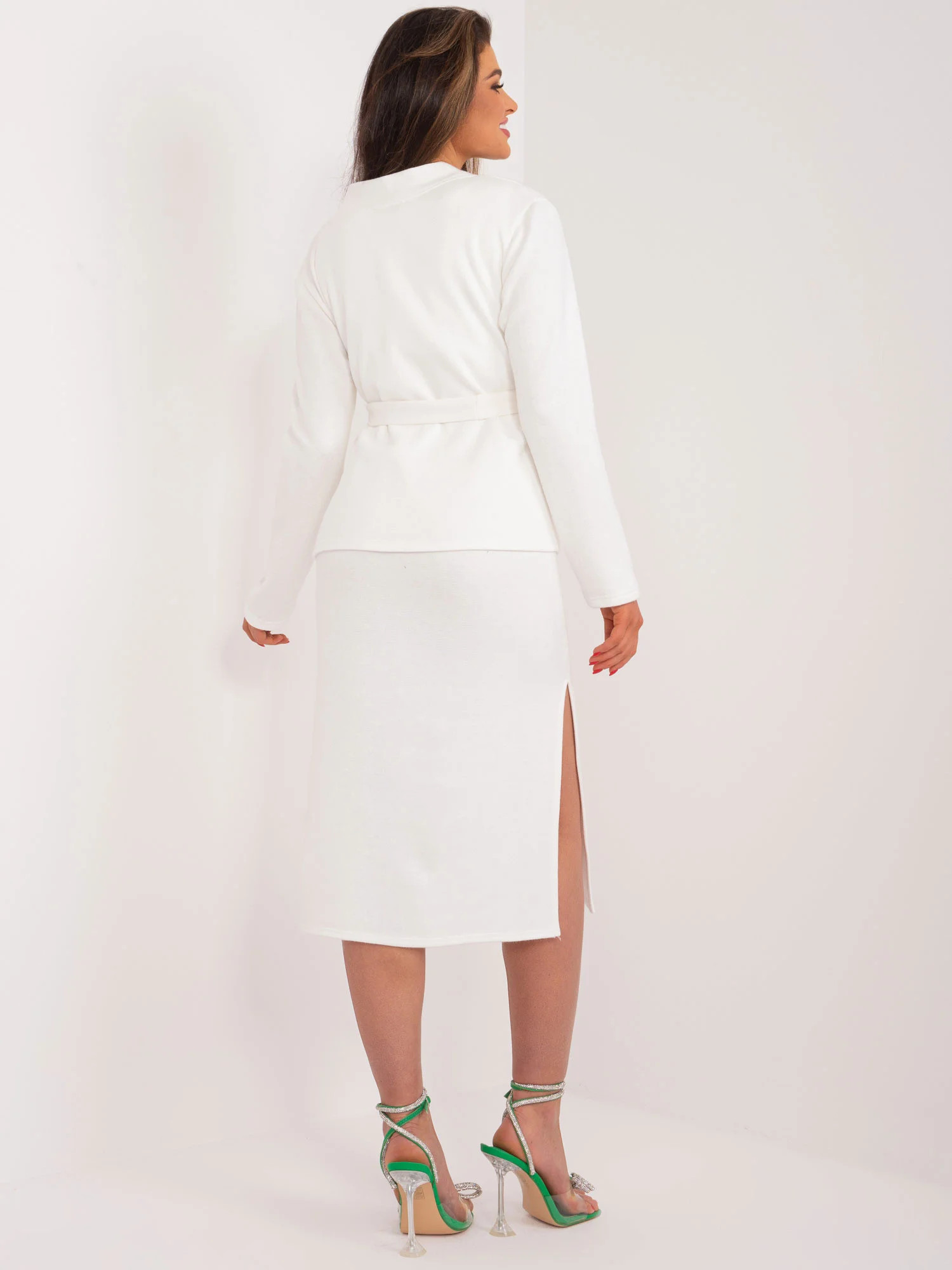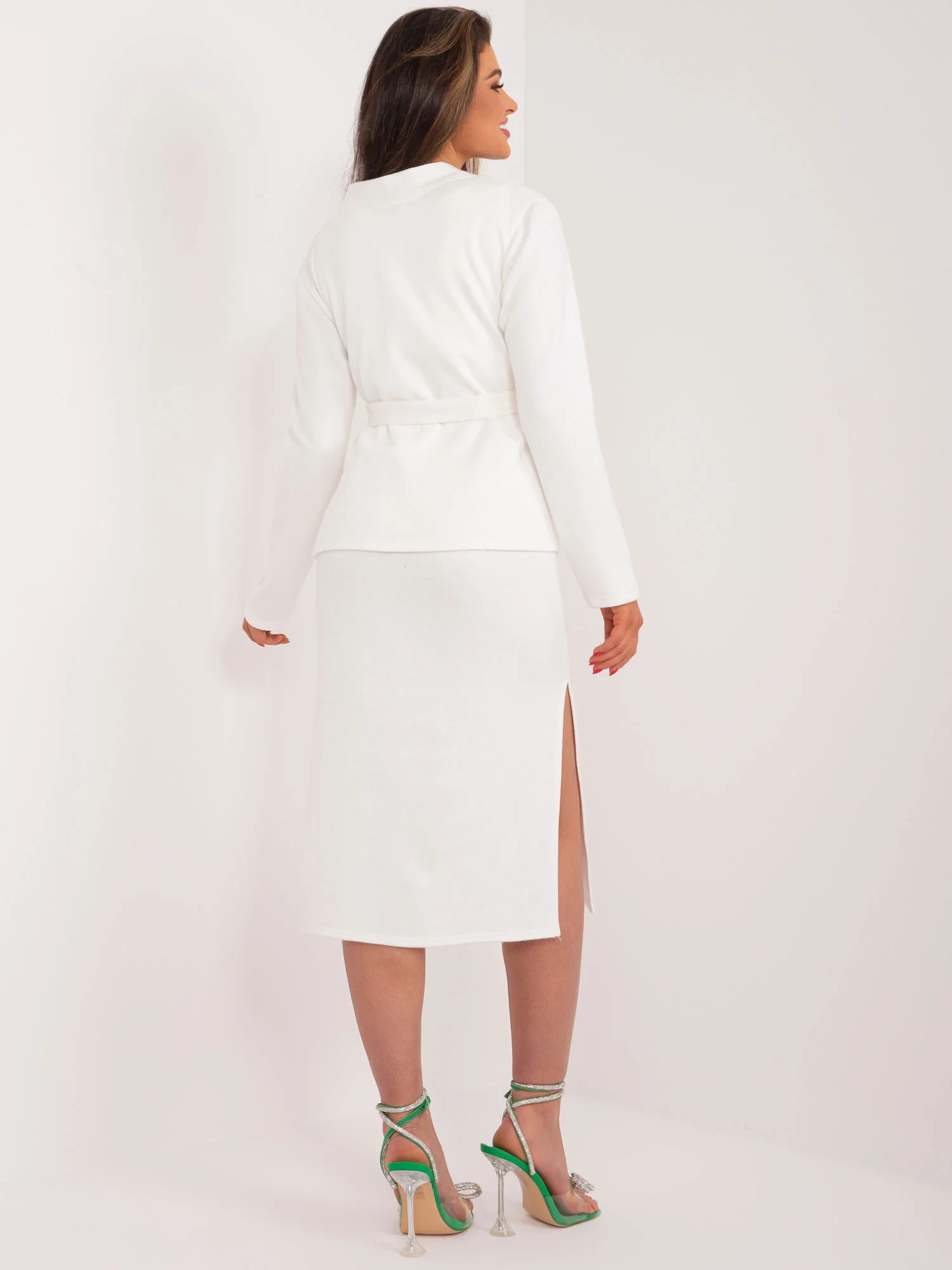 Rozměry soupravy ve velikosti S/M měřené na plocho: šířka sukně v podpaží - 57 cm, délka rukávu - 59 cm, délka sukně - 58 cm, šířka šatů v podpaží - 41 cm, délka šatů - 112