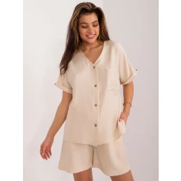 Rozměry soupravy ve velikosti S/M měřené na plocho: šířka halenky v podpaží - 63 cm, délka halenky - 65 cm, šířka šortek v pase - 31 cm, výška topu - 32 cm, délka šortek - 45 cm.