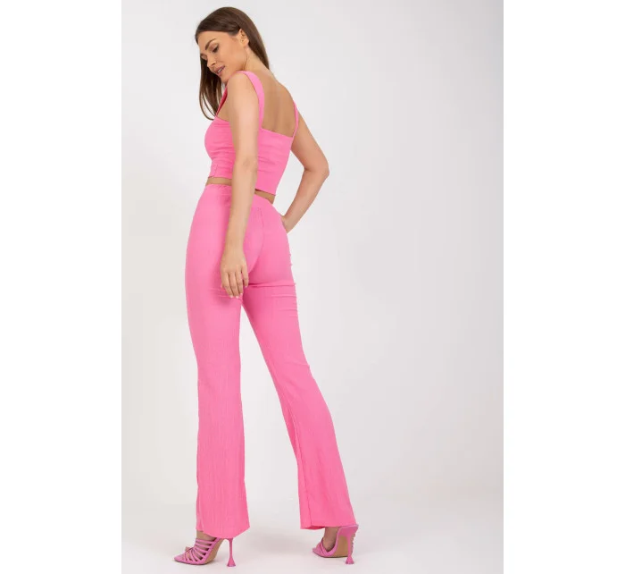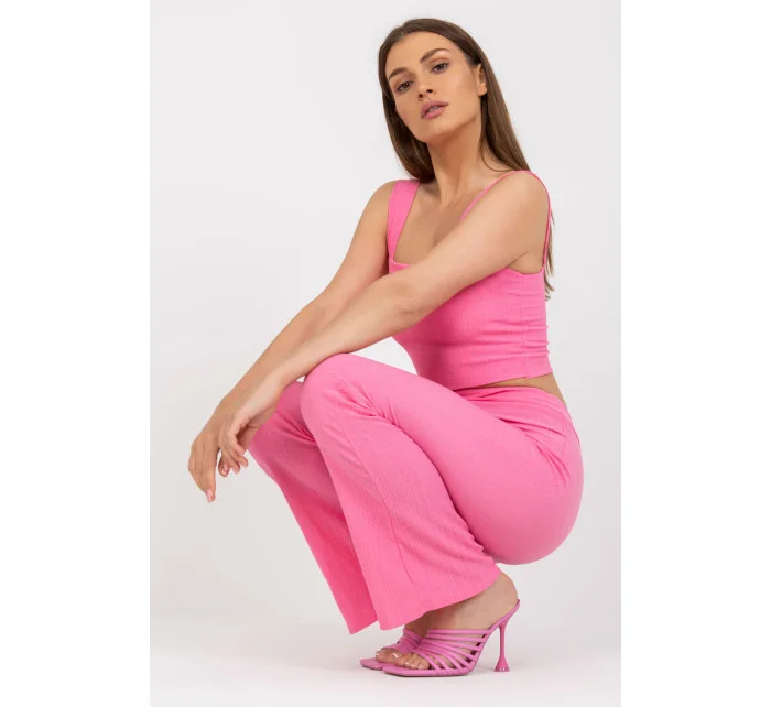 Souprava se skládá z topu a dlouhých kalhot. Krátký top s vyztuženými košíčky, obdélníkový výstřih. Dlouhé kalhoty s vysokým sedem a širokými nohavicemi, v pase na gumu.