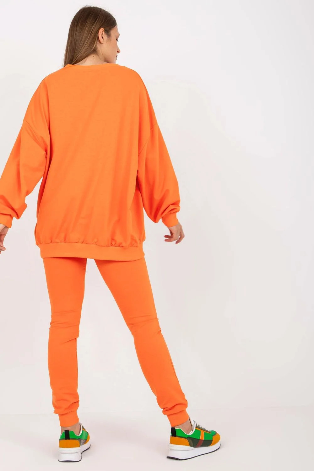 Tepláková souprava sestávající z mikiny a dlouhých kalhot. Volná mikina s dlouhými rukávy. Ozdobná nášivka na přední straně. Dlouhé kalhoty s pružným pasem a nakládanými kapsami.