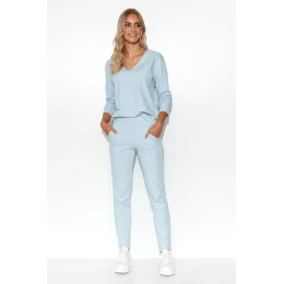 Elegantní dámská tepláková souprava. Minimalistická halenka má hluboký výstřih do V, dlouhé rukávy a zajímavé modelující prošívání. Na přední straně je našita jemná nášivka s písmenem M. Dámská halenka vypadá na siluetě mimořádně elegantně. Kalhoty s rovnými nohavicemi ji skvěle doplňují. I ony jsou opatřeny prošíváním, které dodává soupravě business chic nádech. Na bocích jsou přístupné nakládané kapsy. V pase je do kalhot všita silná elastická šňůrka. Díky tomu kalhoty ještě lépe sedí na ženské postavě.