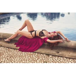 Sway je černá průhledná dvoudílná souprava, která okamžitě zvýrazní pas. Ženské, sexy a fascinující, zdobí tělo kaskádou éterických spojení, průhledů a tenkých ozdobných pásků... Dopřejte si ji a večer se stane příjemným překvapením. Složení: 80 % polyamid, 20 % elastan.