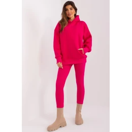 Tato dámská souprava kombinuje módní design a bezkonkurenční pohodlí a poskytuje jedinečný vzhled a volnost pohybu. Mikina je typickým představitelem ležérního stylu. Díky dlouhým rukávům a kapuci poskytuje pocit útulnosti a ochrany před chladem. Rukávy a spodní lem mikiny jsou zakončeny žebrovaným lemem, který působí moderně. Legíny v tomto kompletu se vyznačují žebrovanou tkaninou, která jim dodává jemný, texturovaný vzhled. Legíny s vysokým pasem vytvářejí dokonalou siluetu, která lichotí postavě, zatímco široký žebrovaný pás zajišťuje dokonalé přizpůsobení a pohodlné nošení. Široký stahovací pás legínám nejen dodává originalitu, ale také zajišťuje flexibilitu a dokonalé přizpůsobení individuálním preferencím. Vysoce kvalitní materiály použité při výrobě této soupravy zaručují nejen atraktivní vzhled, ale především volnost pohybu a pohodlné nošení. Je to ideální volba pro aktivní den nebo odpočinkový večer. Tato dámská souprava je volbou pro ženy, které ocení pohodlí, aniž by se vzdaly módního výrazu. Ideální pro mnoho příležitostí, od domácího odpočinku až po setkání s přáteli.