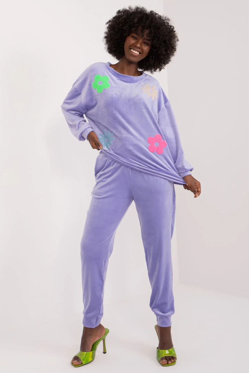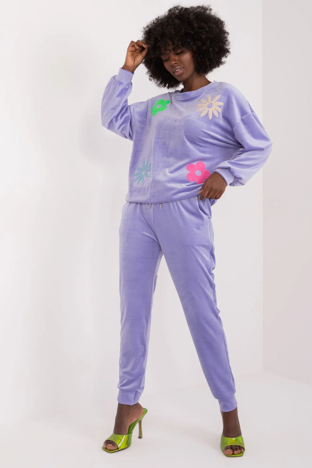 Velurová souprava, která se skládá z mikiny a kalhot, je kombinací elegance a pohodlí, ideální pro neformální chvíle odpočinku. Tato souprava, vytvořená s ohledem na pohodlí při nošení a módní vzhled, jistě upoutá pozornost svým jedinečným designem. Převažujícím materiálem je měkký polyester, který v kombinaci s velurovou úpravou poskytuje příjemný pocit na kůži. Soupravu zdobí na přední straně potisk květin, který jí dodává svěží a romantický nádech, ideální pro letní večery. Díky standardní délce halenky a kalhot je souprava praktická a univerzální. Stylizované žebrování na nohavicích kalhot dodává moderní, sportovní vzhled a zároveň umožňuje volnost pohybu. Kalhoty s vysokým pasem zvýrazňují pas, zatímco boční nakládané kapsy na kalhotách jsou praktické a stylové zároveň. Mikina s dlouhými rukávy a kulatým výstřihem je pohodlná a vhodná pro každodenní nošení. Celek vytváří harmonický obraz, v němž se snoubí elegance a ležérnost. Velurová souprava s květinovým potiskem je ideální volbou pro milovníky ležérního stylu s nádechem romantiky.