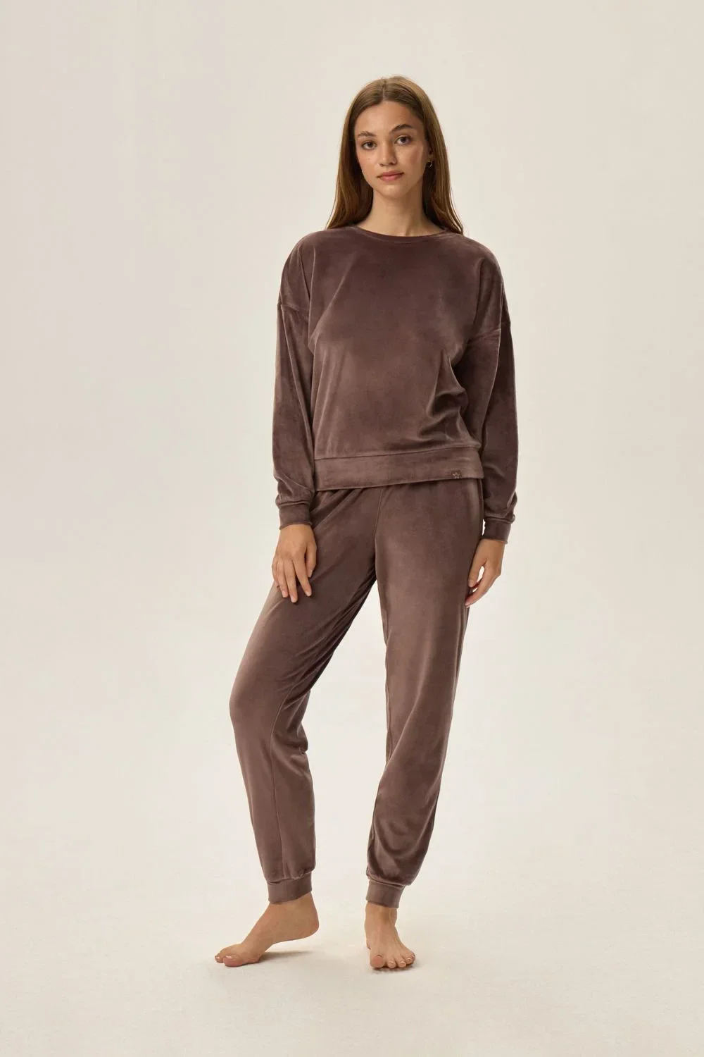 Hledáte pohodlný, volný komplet oblečení v zajímavé barvě? Domácí oděvy Fain jsou v bavlněné tkanině, ve kterých si skutečně odpočinete. Skládají se z mikiny s dlouhým rukávem a širokými rukávy a dlouhých kalhot s elastickým pasem. Rukávy a nohavice jsou navíc dokončeny pružnými lemy.