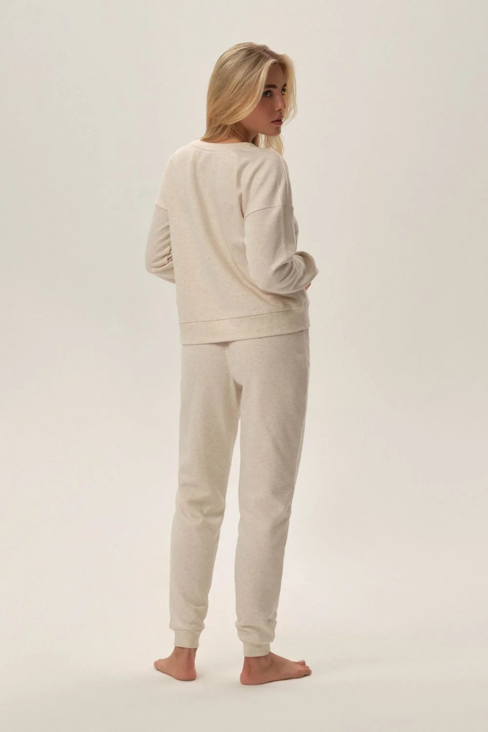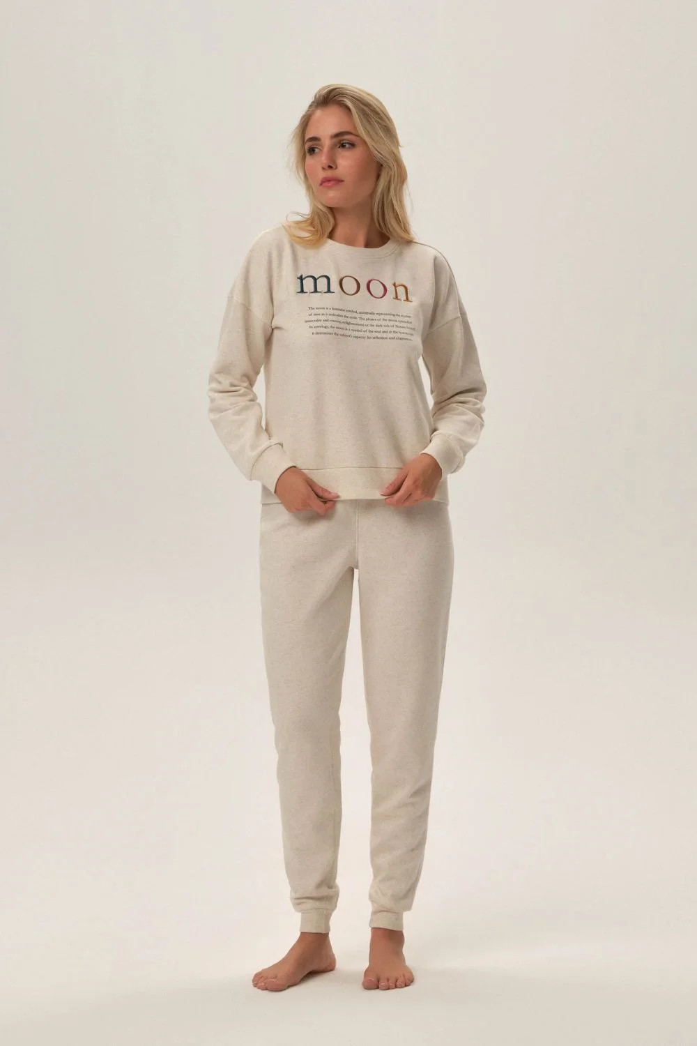 Pokud rádi v volném čase cítíte bezstarostnost, zvolte sadu domácího oblečení Fune. Měkký, příjemný materiál pro vaši kůži vás zahřeje v chladnějších dnech a zajistí vám plnou volnost pohybu. Univerzální sportovní styl svetru zdobí nápis, který vám připomene kouzlo každodenního života. Pohodlné kalhoty jsou dokončeny pružným lemem a šňůrkou v pase, díky čemuž dokonale sedí na každé postavě.