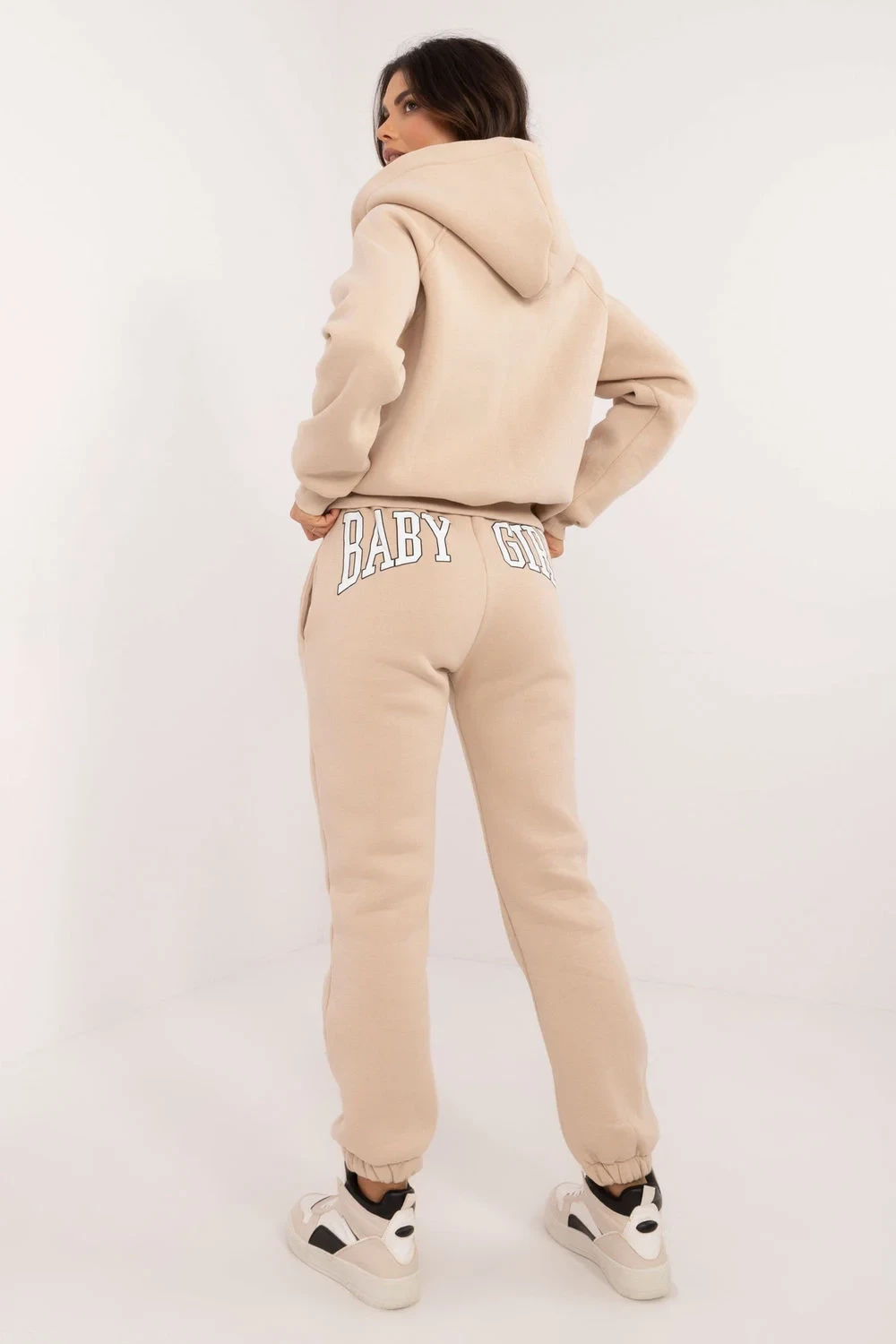Dámská tepláková souprava ideální pro každodenní ležérní a sportovní styling, vyrobená ze směsi bavlny a elastanu. Souprava se skládá z krátkého trička na ramena, mikiny na zip s kapucí, dlouhými rukávy a nakládanými kapsami a kalhot s dlouhými nohavicemi a žebrovanými manžetami. Kalhoty mají vysoký náplet a boční kapsy pro větší pohodlí. Na zadní straně kalhot v úrovni hýždí je decentní potisk. Celkový design je zachován v melanžovém vzoru a dodatečné zateplení poskytuje pohodlí v chladnějších dnech. Jedná se o pohodlnou a stylovou volbu pro každodenní nošení.....