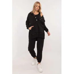 Zateplená dámská souprava v ležérním stylu, ideální pro chladnější dny a každodenní vycházky, se skládá z trička, mikiny a kalhot. Souprava se vyznačuje melanžovým vzorem, který jí dodává jedinečný nádech. Je vyrobena převážně z bavlny a poskytuje pohodlí a teplo, ideální pro podzimní a zimní dny. Kalhoty mají dlouhé nohavice s žebrovanými lemy a vysoký střih, který zvýrazňuje siluetu a zaručuje pohodlné nošení. V pase je stahovací šňůrka pro dokonalé přizpůsobení a zasouvací boční kapsy jsou praktickým řešením pro drobnosti. Mikina s dlouhým rukávem se zapíná do poloviny pomocí patentek, což jí dodává originalitu a usnadňuje oblékání. Má také kapuci a velkou klokaní kapsu, která dodává sportovní nádech a další funkčnost. Je doplněna klasickým tričkem, čímž vzniká pohodlný a stylový komplet, ideální pro každodenní styling v chladnějších dnech.