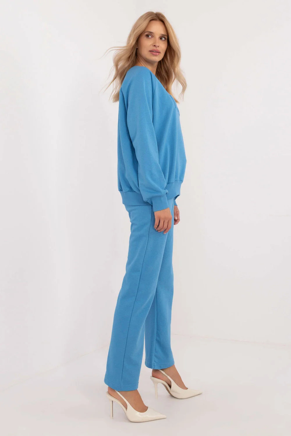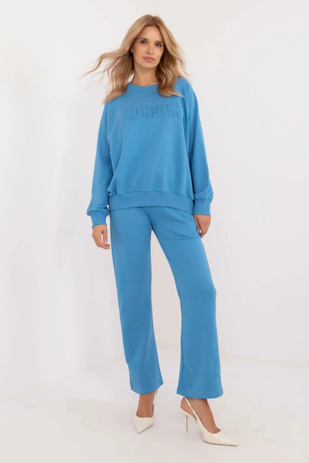 Dámská ležérní mikinová souprava, ideální pro každodenní vycházky, se skládá z mikiny a kalhot. Souprava je vyrobena z vysoce kvalitní směsi bavlny a polyesteru a poskytuje pohodlí a odolnost, zatímco jednobarevný vzor jí dodává univerzálnost. Mikina má dlouhé rukávy, kulatý výstřih a praktické kapsy s nášivkami na přední straně pro sportovní styl. Na přední straně je módní nápis, který upoutá pozornost a dodá celkovému vzhledu originalitu. Dlouhá délka mikiny z ní dělá pohodlný kousek šatníku, ideální pro kombinování s různými spodními díly. Kalhoty mají rovný střih nohavic a vysoký náplet, který zvýrazňuje siluetu a poskytuje pohodlí. V pase je vázačka pro individuální přizpůsobení a praktickým prvkem jsou postranní kapsy, ideální pro uložení drobností. Tento komplet je dokonalou kombinací stylu a pohodlí, skvělou volbou pro každodenní nošení.
