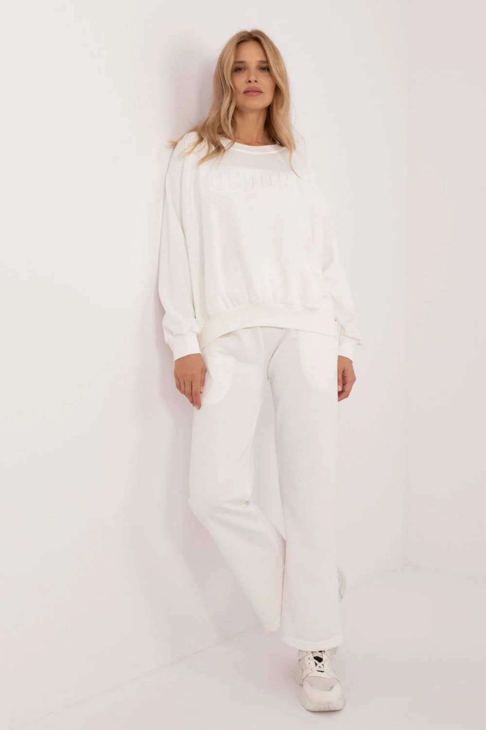 Dámská ležérní mikinová souprava, ideální pro každodenní vycházky, se skládá z mikiny a kalhot. Souprava je vyrobena z vysoce kvalitní směsi bavlny a polyesteru a poskytuje pohodlí a odolnost, zatímco jednobarevný vzor jí dodává univerzálnost. Mikina má dlouhé rukávy, kulatý výstřih a praktické kapsy s nášivkami na přední straně pro sportovní styl. Na přední straně je módní nápis, který upoutá pozornost a dodá celkovému vzhledu originalitu. Dlouhá délka mikiny z ní dělá pohodlný kousek šatníku, ideální pro kombinování s různými spodními díly. Kalhoty mají rovný střih nohavic a vysoký náplet, který zvýrazňuje siluetu a poskytuje pohodlí. V pase je vázačka pro individuální přizpůsobení a praktickým prvkem jsou postranní kapsy, ideální pro uložení drobností. Tento komplet je dokonalou kombinací stylu a pohodlí, skvělou volbou pro každodenní nošení.