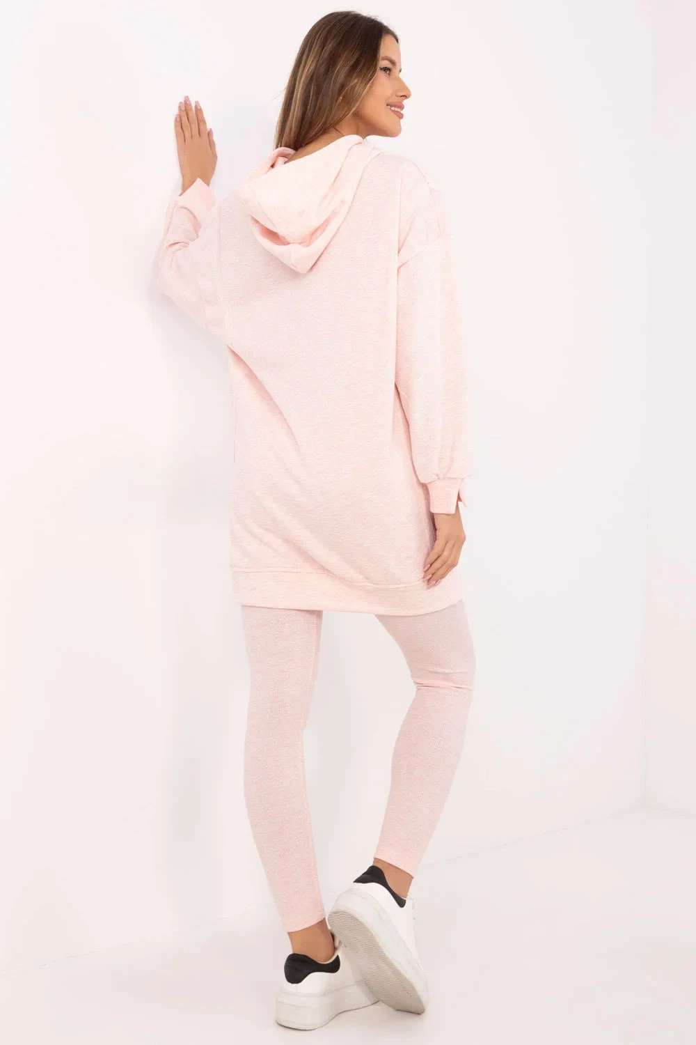 Dámský set skládající se z dlouhé mikiny a legín je ideální volbou pro ženy, které ocení pohodlí a styl ve svých každodenních outfitách. Udržovaný v casual stylu, bude skvělý na procházky, nákupy nebo relaxaci doma. Mikina má prodloužený zádový díl, který jí dodává moderní vzhled a zajišťuje další pohodlí při nošení. Vyrobená z bavlny a polyesteru nabízí příjemný pocit na dotek a odolnost. S kapucí a dlouhým rukávem perfektně chrání před chladem v chladnějších dnech. Legíny se zužujícími se nohavicemi a vysokým pasem zdůrazňují postavu a zároveň poskytují volnost pohybu. Vyrobené z bavlny s přídavkem elastanu se skvěle přizpůsobí tělu. Dodatečným bonusem je pruhovaný materiál, který dodává charakter a odlišuje je od ostatních modelů. Celkový vzhled je držen v jednobarevném, hladkém vzoru, což umožňuje snadné doplnění doplňků a vytvoření souvislého, každodenního looku. Složení materiálu: Mikina: 70% bavlna, 30% polyester Legíny: 90% bavlna, 10% elastan