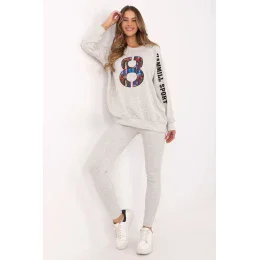 Dámský set skládající se z mikiny a legín je skvělý návrh pro každodenní, volný styl. Ideální pro ženy, které oceňují pohodlí a zároveň chtějí vypadat módně a stylově. Mikina klasického střihu s kulatým výstřihem a dlouhým rukávem je vyrobena z vysoce kvalitní směsi bavlny, polyesteru a elastanu. Je příjemná na dotek, elastická a odolná, což zaručuje pohodlí po celý den. Jemné nášivky a vyšívání na rukávu a přední straně jí dodávají jedinečný charakter a zdůrazňují moderní design. Legíny se štíhlými nohavicemi a vysokým pasem jsou ideálním doplňkem setu. Vyrobené z bavlny s příměsí elastanu se perfektně přizpůsobují postavě, poskytují plnou svobodu pohybu a pohodlí. Celý set je v jednoduchém vzoru, což ho činí univerzálním a snadno kombinovatelným s různými doplňky. Je to perfektní volba na každodenní nošení, relaxaci nebo volnočasové aktivity ve volném stylu. Složení materiálu: Mikina: 72% bavlna, 22% polyester, 6% elastan Legíny: 90% bavlna, 10% elastan