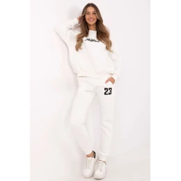 Dámský teplý komplet je spojením stylu a pohodlí, ideální pro každodenní nošení. Skládá se z mikiny a kalhot vyrobených z kombinace bavlny a polyesteru, co zaručuje pohodlí a odolnost materiálu. Model se vyznačuje ležérním stylem, díky čemuž se skvěle hodí do každodenních situací, jako jsou procházky, nákupy nebo setkání s přáteli. Mikina má dlouhé rukávy s pružným lemem a kruhový výstřih, co jí dodává klasický, ale zároveň stylový vzhled. Dalším akcentem jsou vyšívané vzory a nášivky, které zdůrazňují unikátní charakter kompletního setu. Mikina je podšitá, co ji činí ideální volbou pro chladnější dny. Kalhoty mají vysoký pas a přímé nohavice s pružnými lemy, co zajišťuje perfektní přizpůsobení a pohodlí nošení. Mají boční kapsy, které jsou praktickým doplňkem pro uložení drobností. Celkový vzhled je charakterizován souvislým, moderním designem s dominujícím vyšíváním, což z něj činí jak funkční, tak módní volbu.