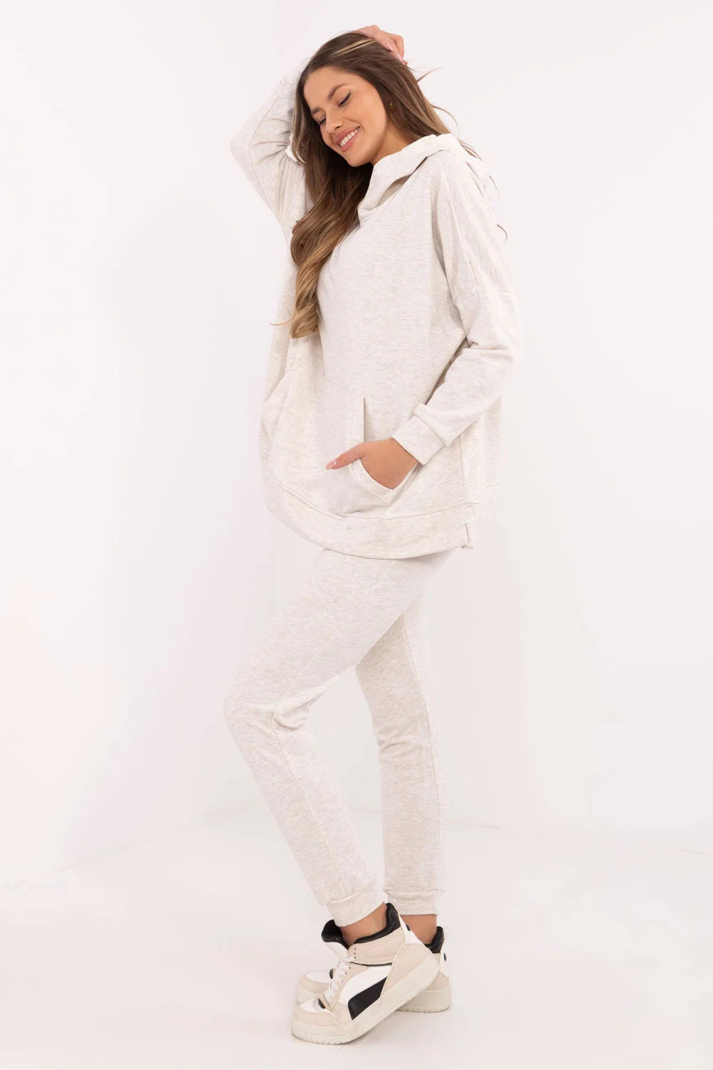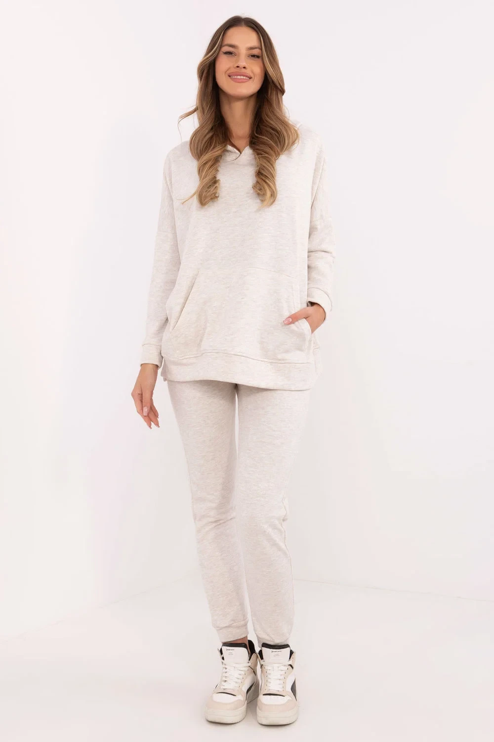 Dámský teplý set je perfektní kombinací pohodlí a stylu, ideální na každodenní aktivity. Vyrobený z měkké směsi bavlny a polyesteru, poskytuje pohodlí a odolnost materiálu. Mikina má klasický, ležérní střih s dlouhými rukávy a manžetami. Na přední straně je praktická kapsa typu klokánek, která dodává sportovní charakter a je ideální pro uložení drobností. Hladký vzor mikiny z ní dělá univerzální kus, který je snadno kombinovatelný na každý den. Kalhoty se vyznačují vysokým pasem, který zdůrazňuje postavu, a nohavicemi s manžetami pro ideální přizpůsobení. Boční kapsy jsou praktickým prvkem, který zvyšuje funkčnost kalhot. Tento set je skvělou volbou pro ženy, které ocení pohodlí a stylový vzhled na každý den. Hladká struktura a decentní design dělají tento set vhodným na každou příležitost v ležérním stylu.