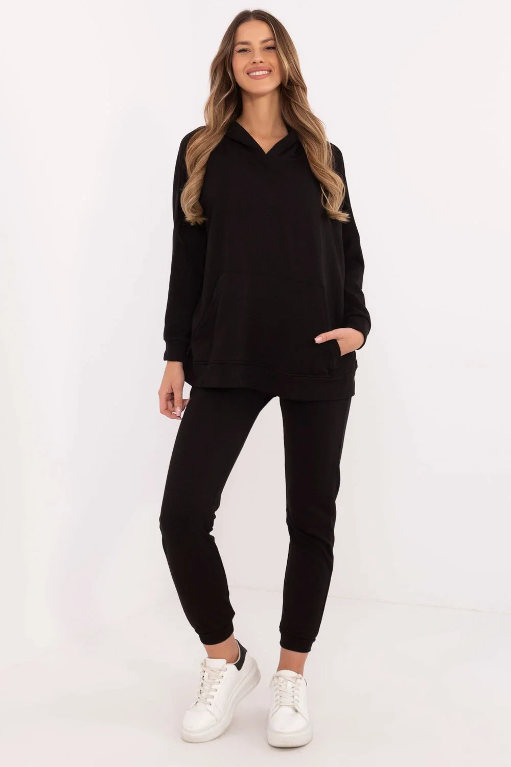 Dámský dresový set je dokonalou kombinací pohodlí a stylu, ideální pro každodenní aktivity. Vyrobený z měkké směsi bavlny a polyesteru, poskytuje pohodlí při nošení a odolnost materiálu. Mikina má klasický, ležérní střih s dlouhými rukávy se zakončením pružným lemem. Na přední straně je praktická kapsa typu klokanka, která dodává sportovní charakter a je vhodná pro uložení drobností. Jednoduchý vzor mikiny z ní činí univerzální a snadnou k stylingu na každý den. Kalhoty se vyznačují vysokým pasem, který zdůrazňuje postavu, a nohavicemi zakončenými pružnými lemy pro ideální přizpůsobení. Boční kapsy jsou praktickým prvkem, který zvyšuje funkcionalitu kalhot. Tento set je skvělou volbou pro ženy, které si cení pohodlí a stylový vzhled na každý den. Hladký materiál a decentní design dělají z tohoto setu skvělý doplněk na každou příležitost v ležérním stylu.