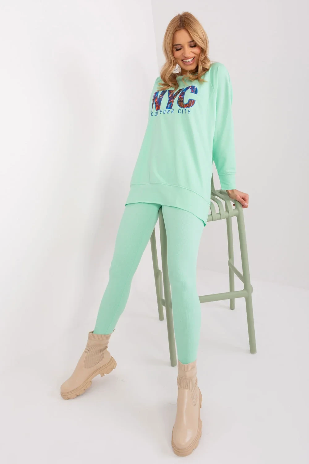 Dámská souprava sestávající z mikiny a legín je dokonalou kombinací pohodlí a stylu. Mikina má na přední straně potisk, který jí dodává jedinečný charakter a podtrhuje moderní design. Je vyrobena ze směsi vysoce kvalitní bavlny, polyesteru a elastanu, takže poskytuje pohodlí a odolnost. Legíny se vyznačují vysokým pasem, který dokonale zvýrazňuje pas a zajišťuje pohodlí při každodenních aktivitách. Zúžené nohavice dokonale padnou, zatímco žebrovaná tkanina dodává jemnou strukturu a módní vzhled. Souprava je ideální pro každodenní výlety, procházky nebo chvíle odpočinku doma. Díky kombinaci univerzálního stylu a funkčnosti je skvělou volbou pro všechna roční období.