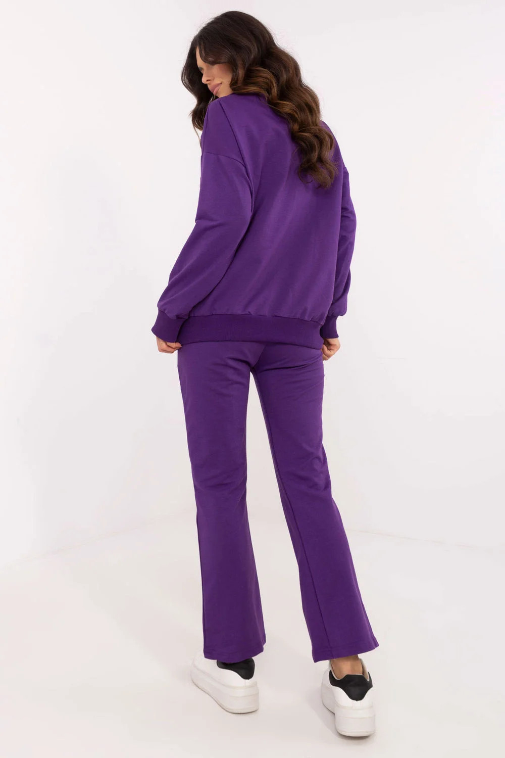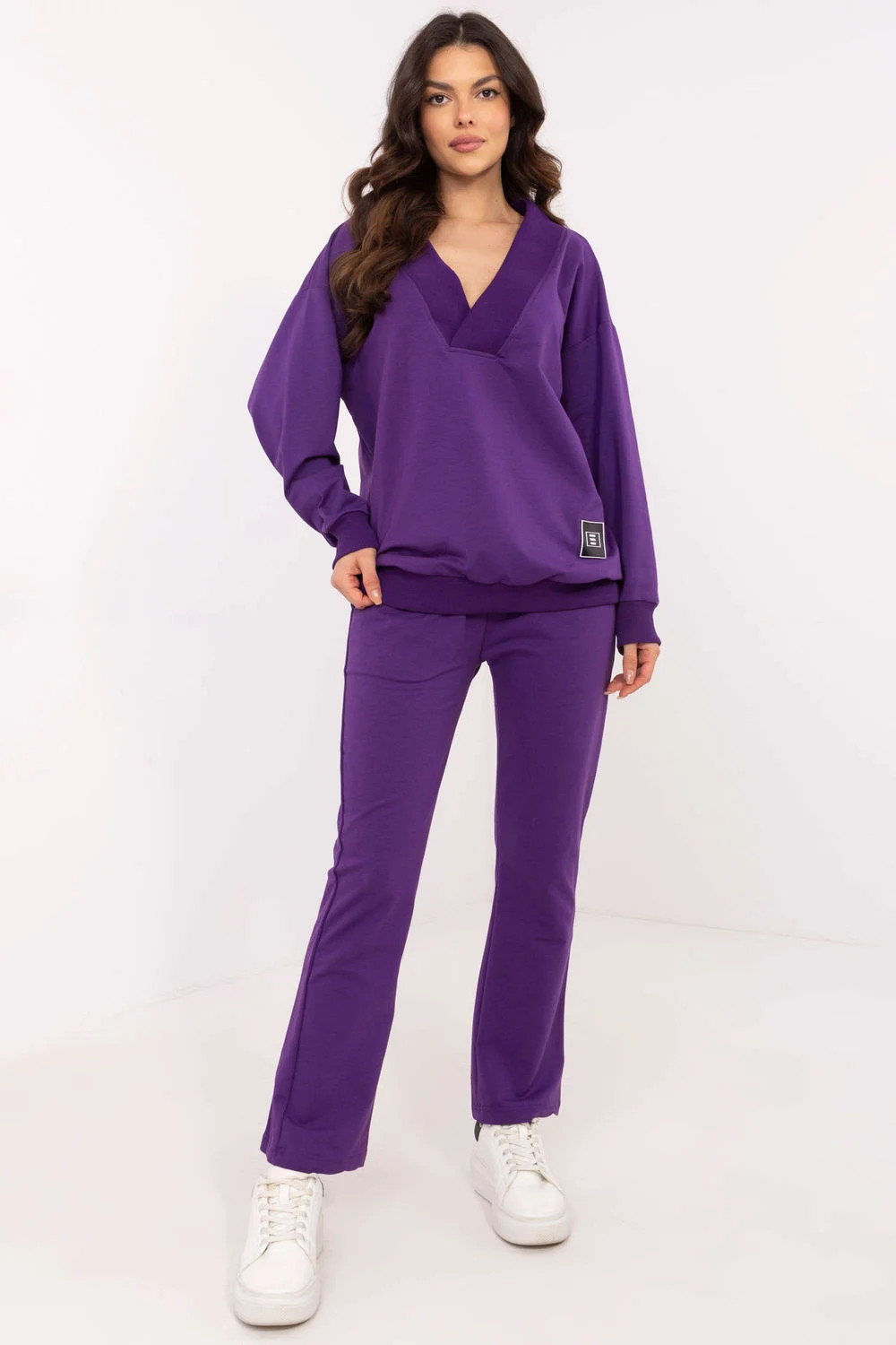 Tento dámský set je ideální volbou na každý den, kombinující pohodlí s minimalistickým stylem. Skládá se z mikiny s dlouhým rukávem a klopovým výstřihem do V, který dodává celku ženský akcent. Jemná nášivka na mikině je módním detail, který přitahuje pozornost. Kalhoty s rovným střihem, vysokým pasem a širokým pásem s gumou zajišťují skvělé padnutí a pohodlí nošení. Postranní vkládané kapsy nejsou jen praktické, ale také zdůrazňují volný charakter setu. Celý set je vyroben z měkké směsi bavlny, elastanu a polyesteru, což zaručuje pohodlí a trvanlivost. Set se skvěle hodí na procházky, nákupy nebo relaxaci doma a jeho univerzální design umožňuje snadné sladění s různými událostmi.