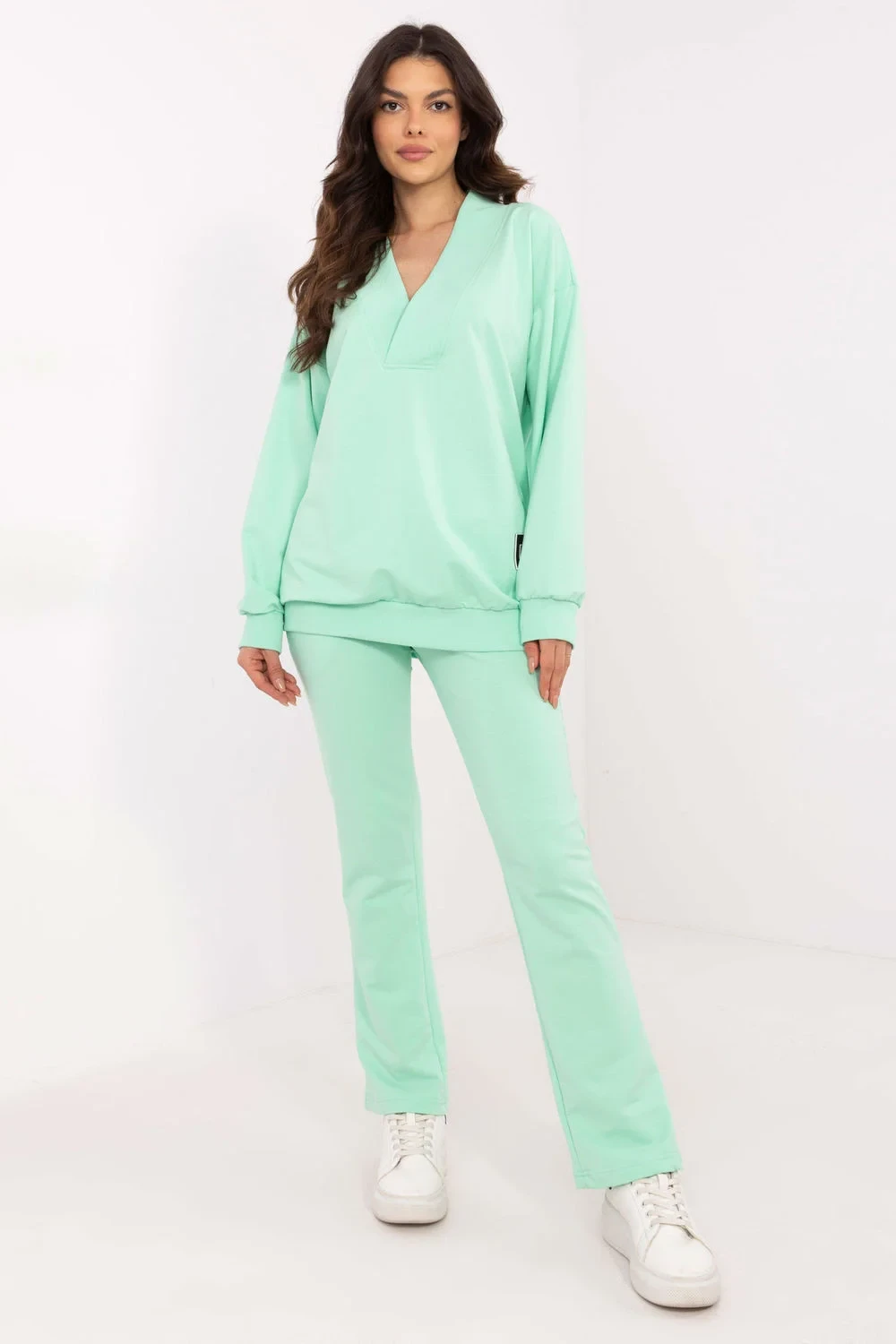 Tento dámský set je ideální volbou na každý den, kombinující pohodlí s minimalistickým stylem. Skládá se z mikiny s dlouhým rukávem a širokým výstřihem do tvaru srdce, který celku dodává ženský akcent. Jemné nášivky na mikině jsou módním detail, který přitahuje pozornost. Kalhoty s jednoduchým střihem, s vysokým pasem a širokou gumou v pase, zaručují perfektní přizpůsobení a pohodlí nošení. Vsuvné boční kapsy nejsou jen praktické, ale také zdůrazňují volný charakter setu. Celý set je vyroben z měkké směsi bavlny, elastanu a polyesteru, což zaručuje pohodlí a odolnost. Set se skvěle hodí na procházky, nákupy nebo relaxaci doma a jeho univerzální design umožňuje snadné kombinování s různými příležitostmi.