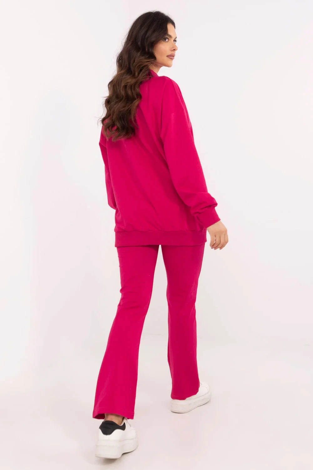 Tento dámský set je ideální volbou na každý den, kombinující pohodlí s minimalistickým stylem. Skládá se z mikiny s dlouhým rukávem a zalomeným výstřihem do tvaru srdce, který dodává celku ženský akcent. Jemné nášivky na mikině jsou módním detail, který přitahuje pozornost. Kalhoty s jednoduchým střihem, vysokým pasem a širokou gumou v pase zajistí perfektní přiléhavost a pohodlí nošení. Vsuvné boční kapsy nejsou pouze praktické, ale také zdůrazňují volný charakter setu. Celý set je vyroben z měkké směsi bavlny, elastanu a polyesteru, což zaručuje pohodlí a trvanlivost. Set se skvěle hodí na procházky, nákupy nebo relaxaci doma, a jeho univerzální design umožňuje snadné přizpůsobení různým příležitostem.