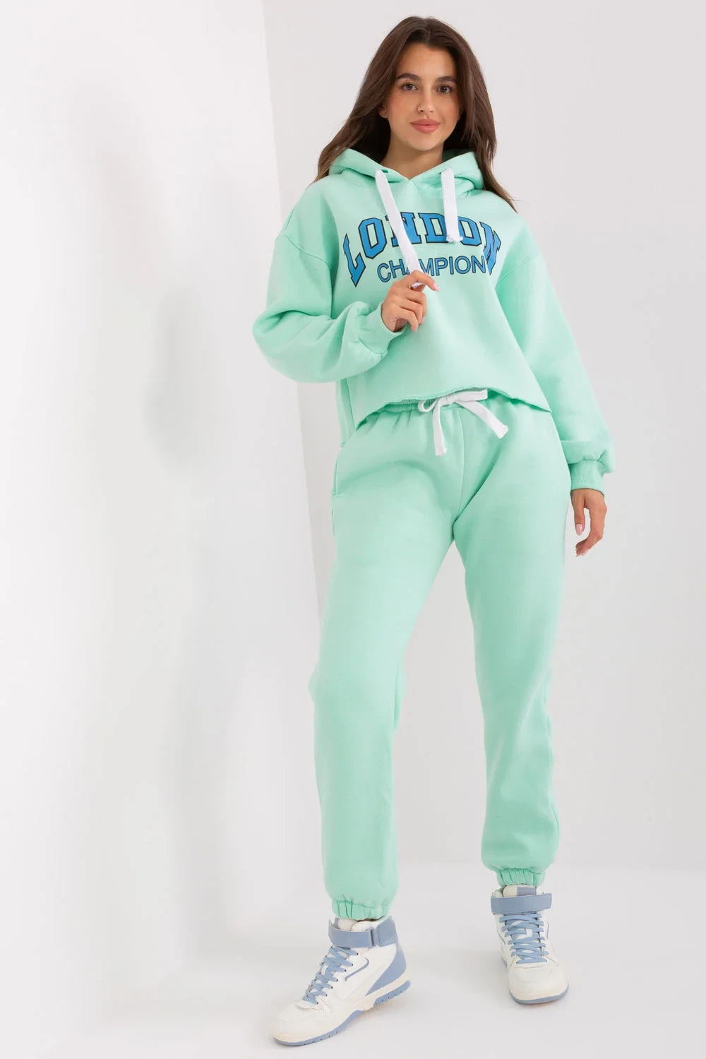 Casualní teplákový set skládající se z mikiny a kalhot je ideální volbou pro každodenní outfit. Mikina s potiskem na přední straně a praktickou kapucí dodává setu moderní, městský charakter. Šňůrky na mikině a kalhotách umožňují nastavení, což zajišťuje pohodlí a individuální přizpůsobení. Kalhoty s dlouhými nohavicemi a manžetami na konci zaručují stylový vzhled a pohodlí nošení. Vysoký pas kalhot a boční kapsy přidávají funkčnost a zdůrazňují pohodlí setu. Vyrobený z převažující bavlny je set měkký, prodyšný a ideální na volný den doma nebo pro procházku.