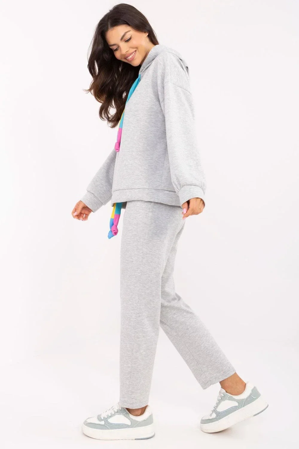 Sada oblečení ve volném stylu je ideální volbou na každý den, spojující pohodlí a módní vzhled. Vyrobená z vysoce kvalitní směsi polyesteru, viskózy a elastanu poskytuje pohodlí nošení a volnost pohybů. Mikina s dlouhým rukávem má praktickou kapuci s šňůrkami k regulaci, co dodává sportovní charakter. Kalhoty s přímým střihem a dlouhými nohavicemi mají vysoký pas a vsazené boční kapsy, a dodatečná šňůra v pasu umožňuje ideální přizpůsobení. Melanžový šedý vzor činí sadu univerzální a skvěle se kombinuje s různými doplňky. Jedná se o skvělou volbu pro každodenní stylizace na procházky, nákupy i odpočinek v domácím útulku.