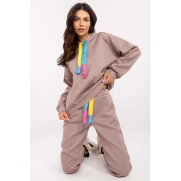 Sada oblečení ve volném stylu je ideální volbou na každý den, kombinující pohodlí a stylový vzhled. Vyrobená z vysoké kvality směsi polyesteru, viskózy a elastanu, poskytuje pohodlí a volnost pohybu. Mikina s dlouhým rukávem má praktickou kapuci s šňůrkami k nastavení, co dodává sportovní charakter. Kalhoty s rovným střihem a dlouhými nohavicemi mají vysoký pas a boční kapsy, a dodatečná šňůrka v pase umožňuje ideální přizpůsobení. Melanžový šedý vzor dělá sadu univerzální a skvěle se kombinuje s různými doplňky. Je to skvělá volba pro každodenní stylizace jak na procházku, nákupy, tak i odpočinek v domácím útulku.