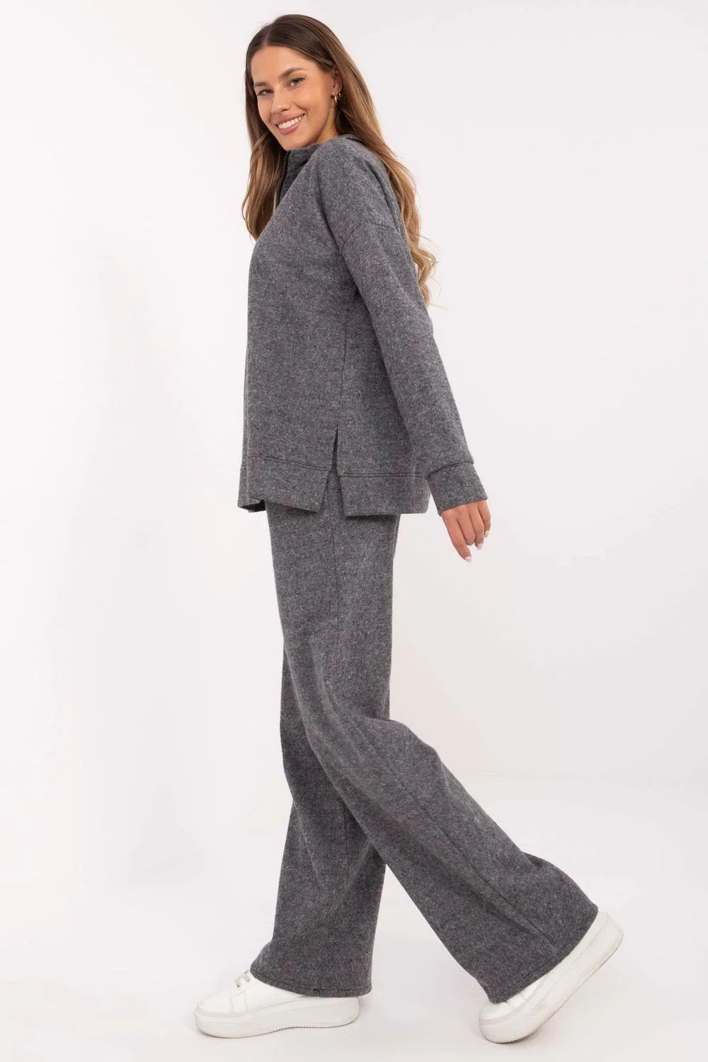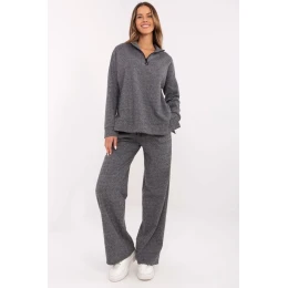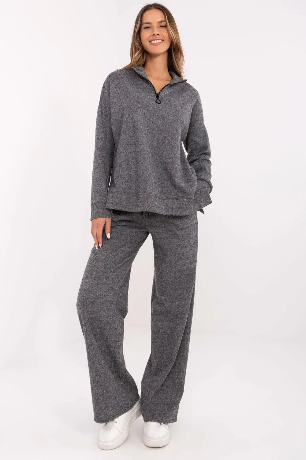 Elegantní a pohodlná souprava z dresu, která se skvěle hodí jak na každodenní nošení, tak i do práce. Vyrobená z vysoce kvalitní směsi bavlny a elastanu, poskytuje pohodlí, pružnost a prodyšnost, dokonale se přizpůsobující postavě. Mikina klasického střihu má dlouhý rukáv, stojáček a praktické zapínání na krátký zip vpředu, co jí dodává moderní charakter. Kalhoty s vysokým pasem a přímými nohavicemi zaručují volnost pohybu a pohodlí nošení. Další výhodou jsou postranní kapsy, které zvyšují funkčnost setu. Hladký vzor a univerzální design dělají tuto soupravu skvělým doplňkem pro každodenní outfit, spojující pohodlí s módním vzhledem. Ideální volba pro ženy, které ocení minimalistický styl a pohodlí ve všech situacích!