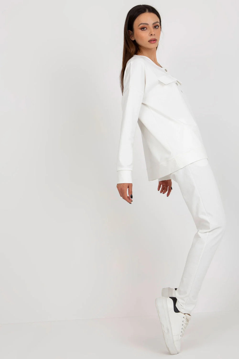 Moderní a pohodlný dresový set, který se skvěle hodí jak do každodenního nošení, tak do práce. Vyrobený z vysoce kvalitní směsi bavlny a elastanu, poskytuje pohodlí, pružnost a perfektní přizpůsobení postavě. Mikina klasického střihu má dlouhý rukáv a praktické zapínání na knoflíky vpředu, co jí dodává stylový, minimalistický charakter. Kalhoty s vysokým pasem a rovnými nohavicemi zaručují volnost pohybu a pohodlí po celý den. Vložené boční kapsy zvyšují funkčnost setu. Hladký vzor a univerzální design dělají tento set skvěle padnoucím do casual stylizací, spojujíc pohodlí s elegantním vzhledem. Ideální volba pro ženy, které si cení styl a pohodlí v každé situaci!
