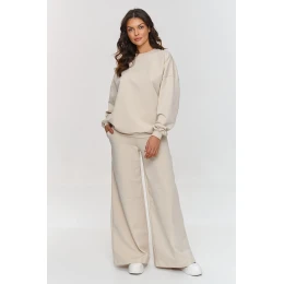 Tento teplákový set je ideální volbou pro ženy, které ocení funkčnost a styl. Sestava se skládá z oversized mikiny s dlouhými rukávy a volných kalhot, které vytvářejí pohodlný, ale stylový celek. Díky širokému střihu kalhoty poskytují plnou volnost pohybu a elastický pas se přizpůsobí postavě. Navíc jsou rozšiřovány ke spodu, což dává sestavě výjimečný a dynamický charakter. Mikina s klasickým kulatým výstřihem a rukávy zakončené pružnými lemy doplňují celek, vytvářejí pohodlný a zajímavý set. Teplákový oblek je vyroben z měkkého a příjemného materiálu, který zaručuje pohodlí každý den. Díky jednoduchému, ale efektnímu střihu se sestava skvěle hodí do různých situací. Náš teplákový set spojuje pohodlí, funkčnost a moderní vzhled. Hodí se jak na odpočinek doma, tak na setkání s přáteli, nákupy nebo do práce. Set skvěle ladí s oblíbenými teniskami, tvoří stylovou, pohodlnou a módní stylizaci. Bavlna 95 %