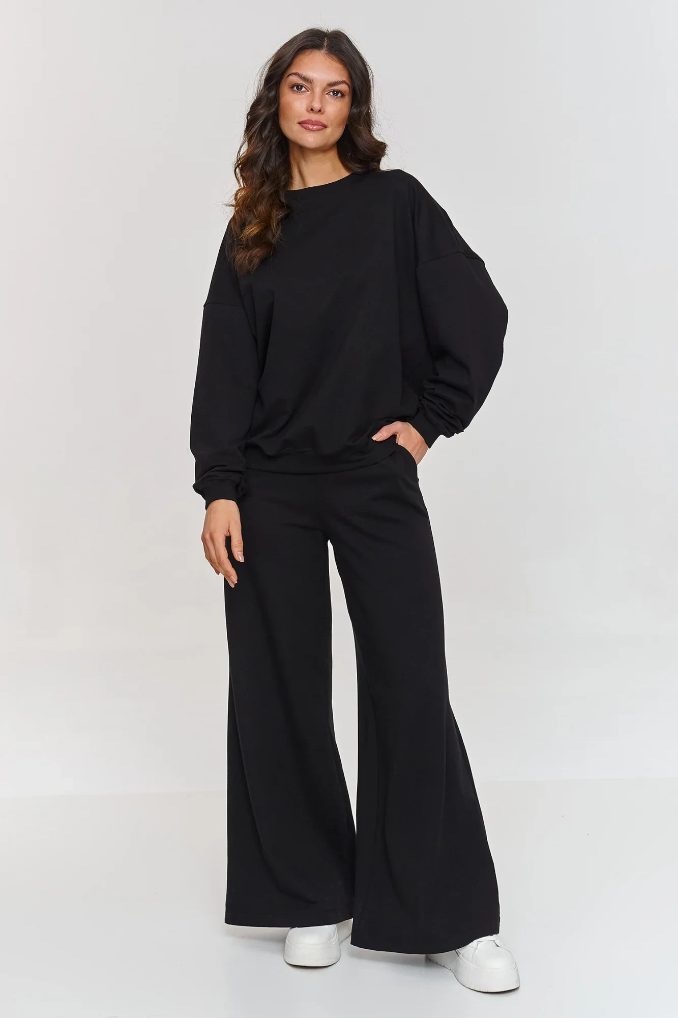 Tento teplák je ideální volbou pro ženy, které ocení funkčnost a styl. Sada se skládá z oversized mikiny s dlouhými rukávy a volných kalhot, které vytvářejí pohodlný, ale stylový celek. Díky širokému střihu kalhoty poskytují plnou volnost pohybu a elastický pas se přizpůsobuje postavě. Navíc jsou rozšiřovány ke dnu, což dává sadě výjimečný a dynamický charakter. Mikina s klasickým kulatým výstřihem a rukávy s pružnými lemy doplňují celek, vytvářejí pohodlnou a zajímavou sadu. Tepláky jsou vyrobeny z měkkého a příjemného materiálu, který zajišťuje pohodlí každý den. Díky jednoduchému, ale efektnímu střihu se sada skvěle hodí do různých situací. Naše tepláková sada spojuje volnost, funkčnost a moderní vzhled. Hodí se jak na odpočinek doma, tak na setkání s přáteli, nákupy nebo do každodenního života. Sada skvěle ladí s oblíbenými teniskami, vytvářející stylové, pohodlné a módní outfit. Bavlna 95 %