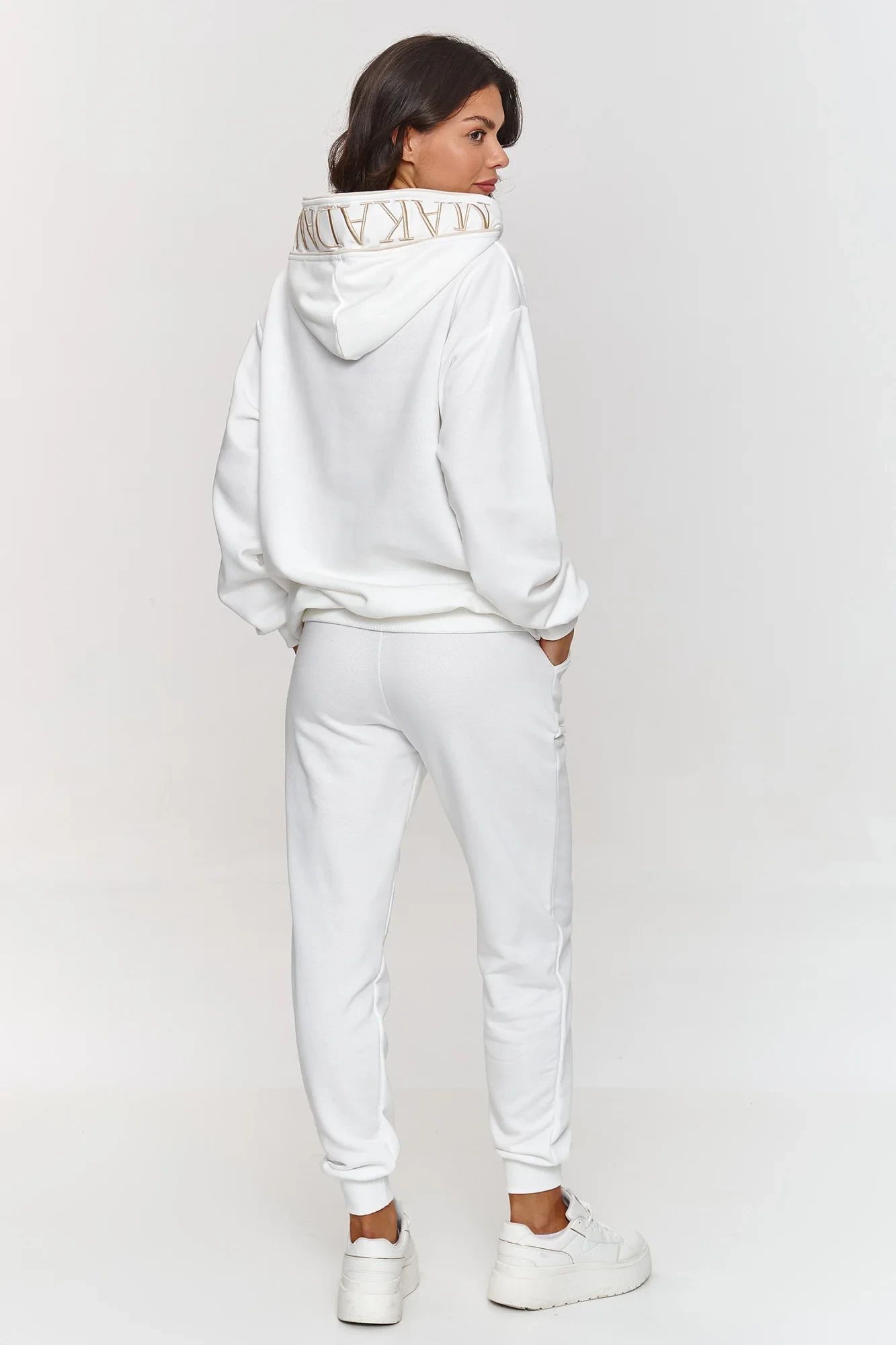Máte rádi minimalismus s nádechem elegance? Vyberte si set skládající se z kalhot a mikiny s vyšívanou kapucí. Jedná se o skvělé spojení pohodlí a jemných detailů, které dodávají outfitu jedinečný charakter. Ideální jak na každý den, tak i na více neformální výlety. Volné teplákové kalhoty zajistí pohodlí a volnost pohybu, zatímco mikina s kapucí zdobená elegantním vyšíváním jí dodává jedinečný vzhled a zároveň zdůrazňuje péči o detaily. Kapsy na mikině a kalhotách jsou funkčním prvkem, který přidává celkovému outfitu praktičnost. Díky nim můžete snadno uložit drobné předměty, což tento set činí ještě pohodlnějším. Bílé lemy na kapuci a u kapes přinášejí jemný kontrast, který dodává svěžest a zdůrazňuje moderní vzhled. Tyto detaily dodávají setu jedinečný charakter a přitahují pozornost. Přírodní materiál zajišťuje měkkost, prodyšnost a příjemné přiléhání k tělu. Tento set se hodí jak do sportovních outfitů, tak do každodenních městských stylizací. Můžete ho nosit jako celek nebo kombinovat jednotlivé kusy s jiným oblečením, vytvářejíc různé moderní kombinace.