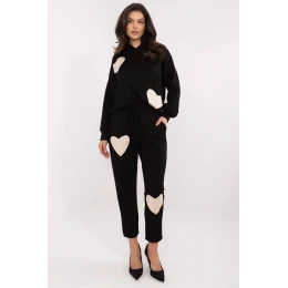 Casualní dámský dresový set, kombinující pohodlí s moderním vzhledem. Vyrobený z měkké směsi viskózy, bavlny a elastanu, poskytuje pohodlí po celý den. Hladký materiál mu dodává univerzální charakter, a ozdobné nášivky ve tvaru srdce na mikině a kalhotách přidávají jemnou, ženskou eleganci. Mikina s dlouhým rukávem a praktickou kapucí se skvěle hodí na chladnější dny. Kalhoty s rovným střihem a vysokým pasem s bočními kapsami zajistí pohodlí a volnost pohybu. Je to ideální volba pro každodenní outfit, skvělá jak na procházky, tak na relaxaci doma.