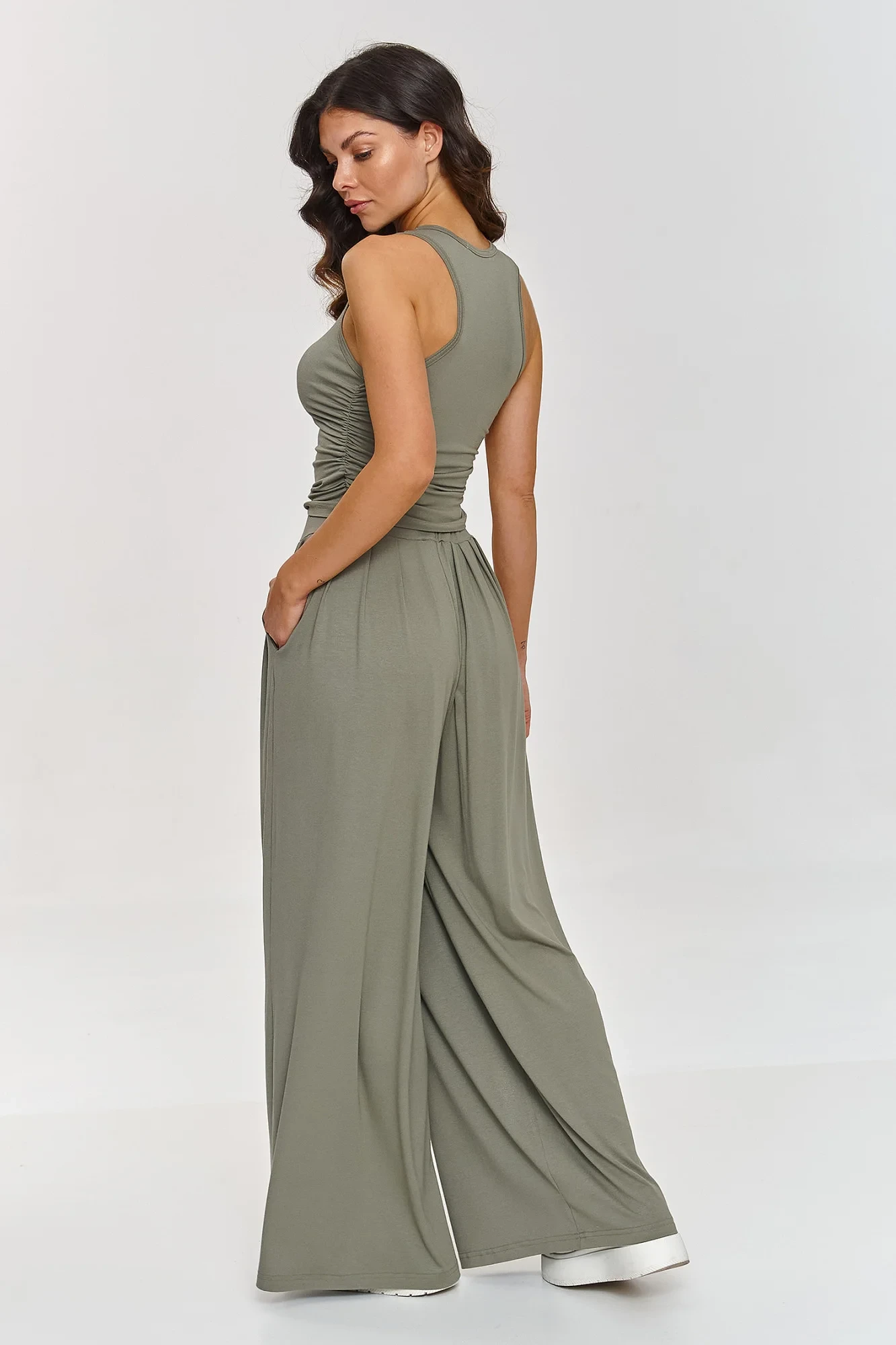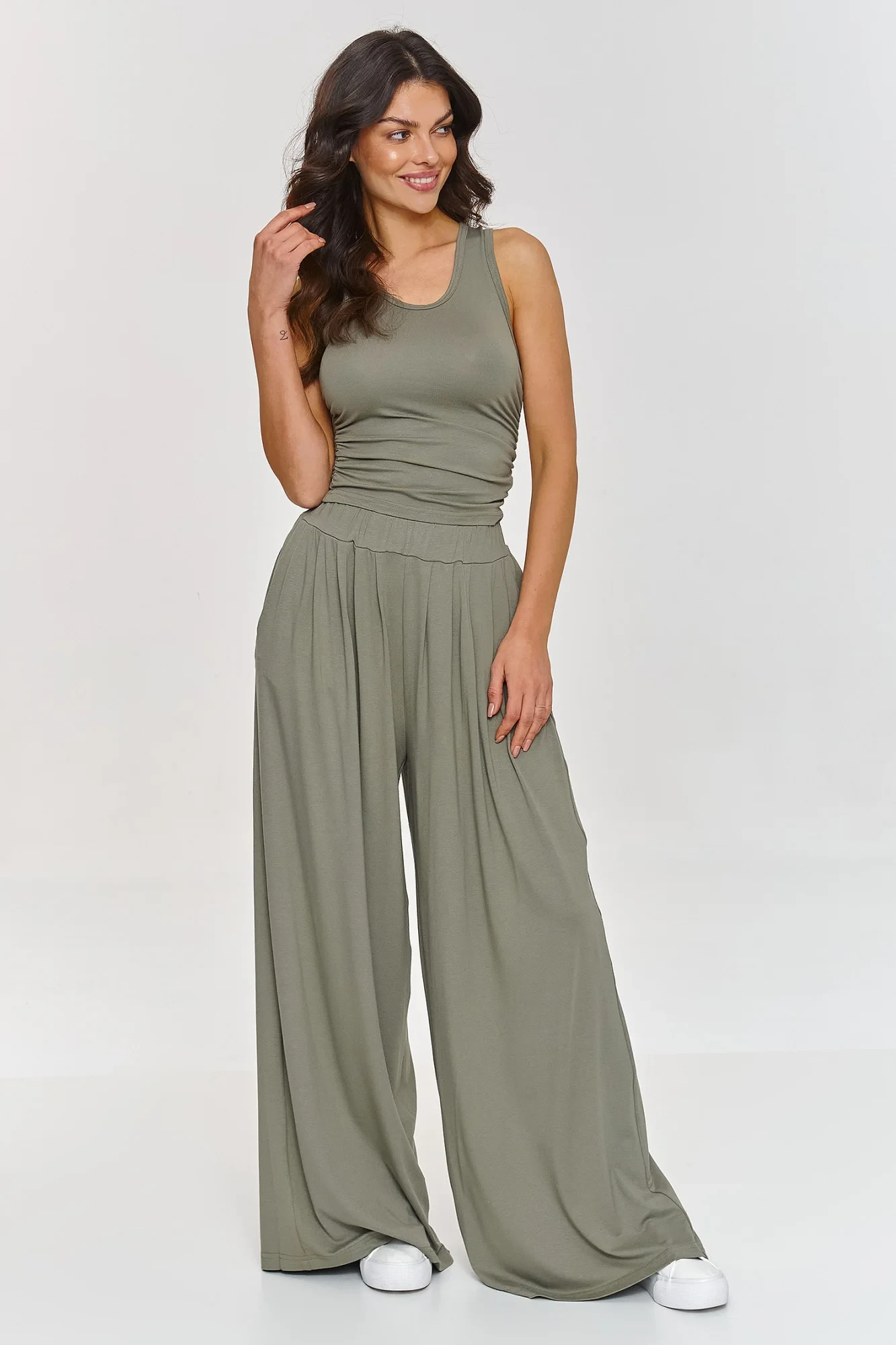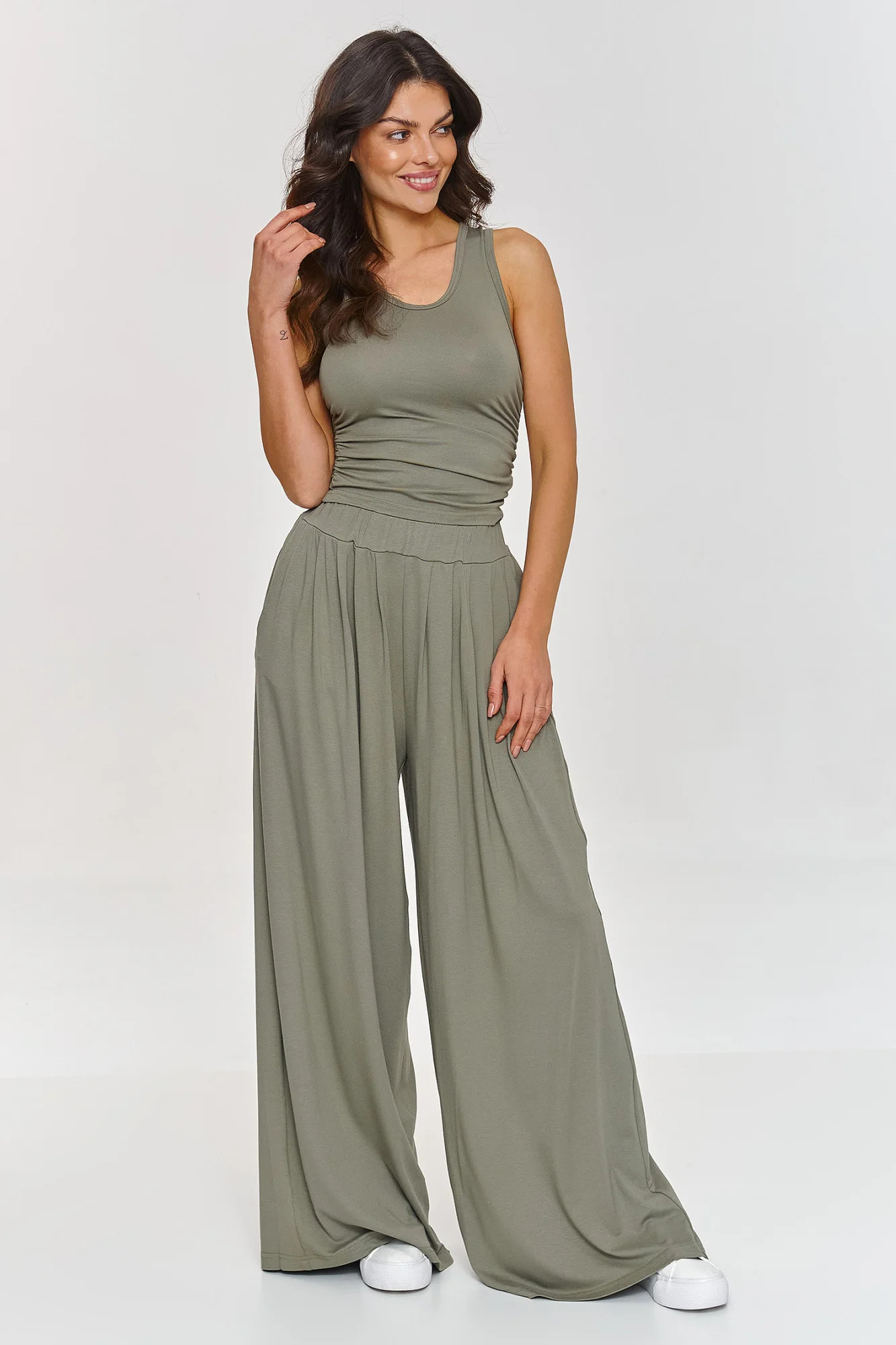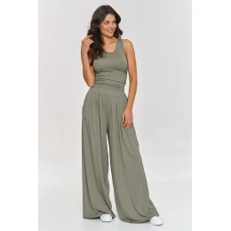 Volný dámský set je ideální nabídkou pro ženy, které hledají spojení pohodlí s elegancí. Součástí setu je přizpůsobený top s ramínky, který je navíc zdoben záhyby na bocích, a široké kalhoty s vysokým pasem, které společně vytvářejí módní a pohodlnou stylizaci. Vyrobený z lehké, prodyšné viskózy je tento set skvělý na teplé dny, poskytující pocit volnosti po celý den. Set je jednoduchý, ale efektní, kombinuje pohodlí s moderním vzhledem. Můžete ho nosit jak na každý den, tak na méně formální setkání. Skvěle ladí s bílými teniskami nebo sandály, vytvářející ležérní vzhled, ale stejně dobře se hodí k elegantnějším doplňkům. Nepopiratelnou výhodou tohoto setu je materiál, který se vyznačuje skvělou prodyšností, což z něj činí příjemný k nošení, i po dlouhé hodiny. Náš viskózový set je letní nabídkou spojující stylový design s pohodlím. Skvěle se hodí jak do práce, na společenská setkání, tak i na relaxační dny v zahradě. Investujte do tohoto módního setu, který vám zajistí pohodlí a styl po celý den!
