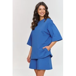 Tento pohodlný dresový set je ideálním řešením pro ženy, které si cení pohodlí a nadčasovosti ve svých každodenních stylizacích. Oversize střih trička zaručuje plnou volnost pohybu a trendy vzhled. Krátký rukáv a klasický kulatý výstřih dělají z tohoto kousku ideální nenáročnou základnu pro každodenní stylizace. Šortky mají elastický pas, co zajišťuje správné přizpůsobení a bokové kapsy zdůrazňují jejich funkčnost. Volný střih kalhot a široké nohavice zajišťují plnou volnost pohybů a kratší délka je činí ideální na teplé dny. Jednoduchý, ale efektní dresový set spojuje minimalistický design s pohodlím, vytvářejíc skvělou volbu pro každodenní stylizace. Je to must-have pro relaxaci doma, setkání s přáteli nebo krátké výlety. Nicméně jeho univerzálnost umožňuje také jeho využití při různých fyzických aktivitách. Bavlna 95 %