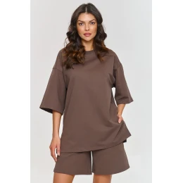 Tento pohodlný teplákový set je ideálním řešením pro ženy, které si cení pohodlí a nadčasovosti v každodenních stylizacích. Přesný střih trička zaručuje plnou volnost pohybu a stylový vzhled. Krátký rukáv a klasický kulatý výstřih činí z tohoto setu ideální nezávaznou základnu pro každodenní stylizace. Kraťasy mají elastický pas, co zajišťuje správné přizpůsobení a boční kapsy zdůrazňují jejich funkčnost. Volný střih kalhot a široké nohavice zajišťují plnou volnost pohybu a kratší délka z nich činí ideální volbu na teplé dny. Jednoduchý, ale efektní teplákový set spojuje minimalistický design s pohodlím, vytvářejíc skvělou možnost pro každodenní stylizace. Je to must-have na relaxaci doma, setkání s přáteli nebo krátké výlety. Jeho všestrannost však umožňuje také jeho využití při různých fyzických aktivitách. Bavlna 95 %