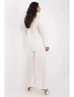 Elegantní a pohodlný dámský kompletní set, ideální na každodenní outfit. Vyrobený z prodyšné směsi bavlny a lnu, poskytuje lehkost, pohodlí nošení a přirozený vzhled. Košile s delším střihem s knoflíky a klasickým límečkem dodává celku elegantní, ale uvolněný charakter. Dlouhý rukáv přidává stylu a funkčnosti. Kalhoty s vysokým pasem a širokými nohavicemi zajistí volnost pohybu a trendy vzhled, elastický pas zaručí perfektní sedění. Další výhodou jsou praktické boční kapsy. Skvělá volba pro ženy, které oceňují spojení pohodlí s moderním, ležérním stylem.