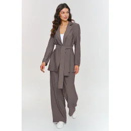 Tento dámský set byl navržen s ohledem na ženy, které hledají spojení stylu, pohodlí a moderní elegance. Sako s delším volným střihem dodává stylizaci moderní charakter a vázaný pásek umožňuje přizpůsobení postavě a zdůrazňuje pas. Nemá podšívku, což ho dělá lehčím a volnějším. Kalhoty s širokými nohavicemi zdůrazňují módní vzhled a elastický pas zajišťuje maximální pohodlí. Model je vyroben z lehkého, strukturálního materiálu, který zdůrazňuje jeho výjimečnost a eleganci. Další výhodou je možnost nošení každého kusu samostatně, tvořící různorodé a originální outfit. Díky jednoduchému, ale efektnímu designu je tento set skvělým řešením jak pro výlety s přáteli, tak do kanceláře, na obchodní schůzky a jiné formální události, kde chcete vypadat profesionálně a zároveň neustupovat pohodlí. Nylon 15 %