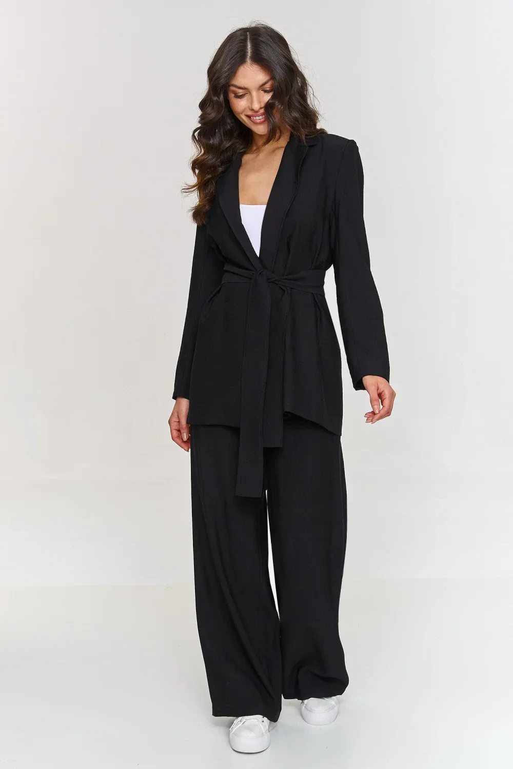 Tento dámský set byl navržen s ohledem na ženy, které hledají spojení stylu, pohodlí a moderní elegance. Sako s delším volným střihem dodává outfitu moderní charakter a pásek umožňuje přizpůsobení siluety a zdůraznění pasu. Nemá podšívku, což ho dělá lehčím a volnějším. Kalhoty s širokými nohavicemi zdůrazňují módní vzhled a elastický pas zajišťuje maximální pohodlí. Model je vyroben z lehkého, strukturálního materiálu, který zdůrazňuje jeho výjimečnost a třídu. Další výhodou je možnost nošení každého kusu samostatně, vytvářející různé a originální outfity. Díky jednoduchému, ale efektnímu designu je tento set skvělým řešením jak pro výlety s přáteli, tak i do kanceláře, na obchodní schůzky a další formální události, kde chcete vypadat profesionálně, aniž byste se vzdali pohodlí.