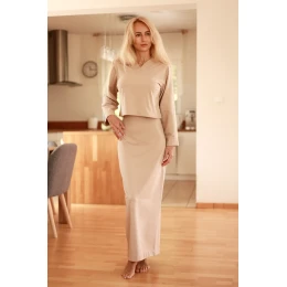 Sada tvoří šaty Irving a mikina Arizona. Vyrobeno z pohodlného dresového pletiva s přídavkem elastanu. Sada Irving se zalíbí ženám, které preferují sportovní styl a ocení pohodlí. Dlouhé přímé šaty s odnímatelnými ramínky se hodí na teplejší dny. V kombinaci s mikinou vytvoří outfit, který obstojí, když se ochladí. Délka v tabulce se vztahuje k mikině.