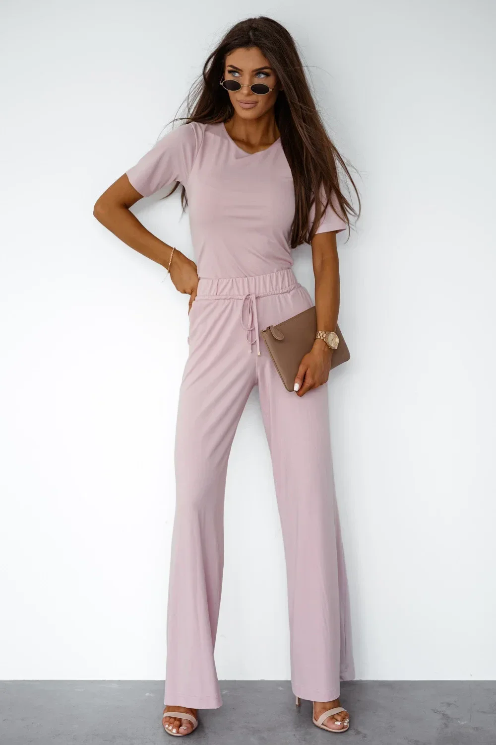 Dámský set z viskózy s přídavkem elastanu je ideální kombinací stylu a pohodlí. Součástí setu je tričko s krátkým rukávem a klasickým kulatým výstřihem, které jemně zdůrazňuje postavu a zajistí pohodlné nošení. Dlouhé kalhoty s elastickým pásem a šňůrkou v pase zaručují perfektní přizpůsobení a boční kapsy přidávají praktičnost. Lehký, prodyšný materiál s příměsí elastanu dělá set měkký, elastický a skvělý jak na každodenní nošení, tak na odpočinek.