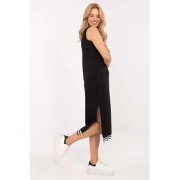 Dámský casual set je ideální nabídkou na každý den, spojující pohodlí a ženský charakter. Vyrobený z materiálu typu "máslo" (viskóza s přídavkem elastanu) okouzluje svou měkkostí, jemností a výjimečným pocitem při doteku. Mikina s kapucí zapíná na zip, má dlouhé rukávy, praktické kapsy a ozdobné elastické manžety, které dodávají celku sportovní akcent. Šaty s ozdobným zakončením midi délky s širokými ramínky a výstřihem do V skvěle ladí s mikinou, vytvářející souvislý a trendy outfit. Set se hodí do každodenních kombinací, zaručuje pohodlí a volnost pohybu, a zároveň stylový a moderní vzhled.