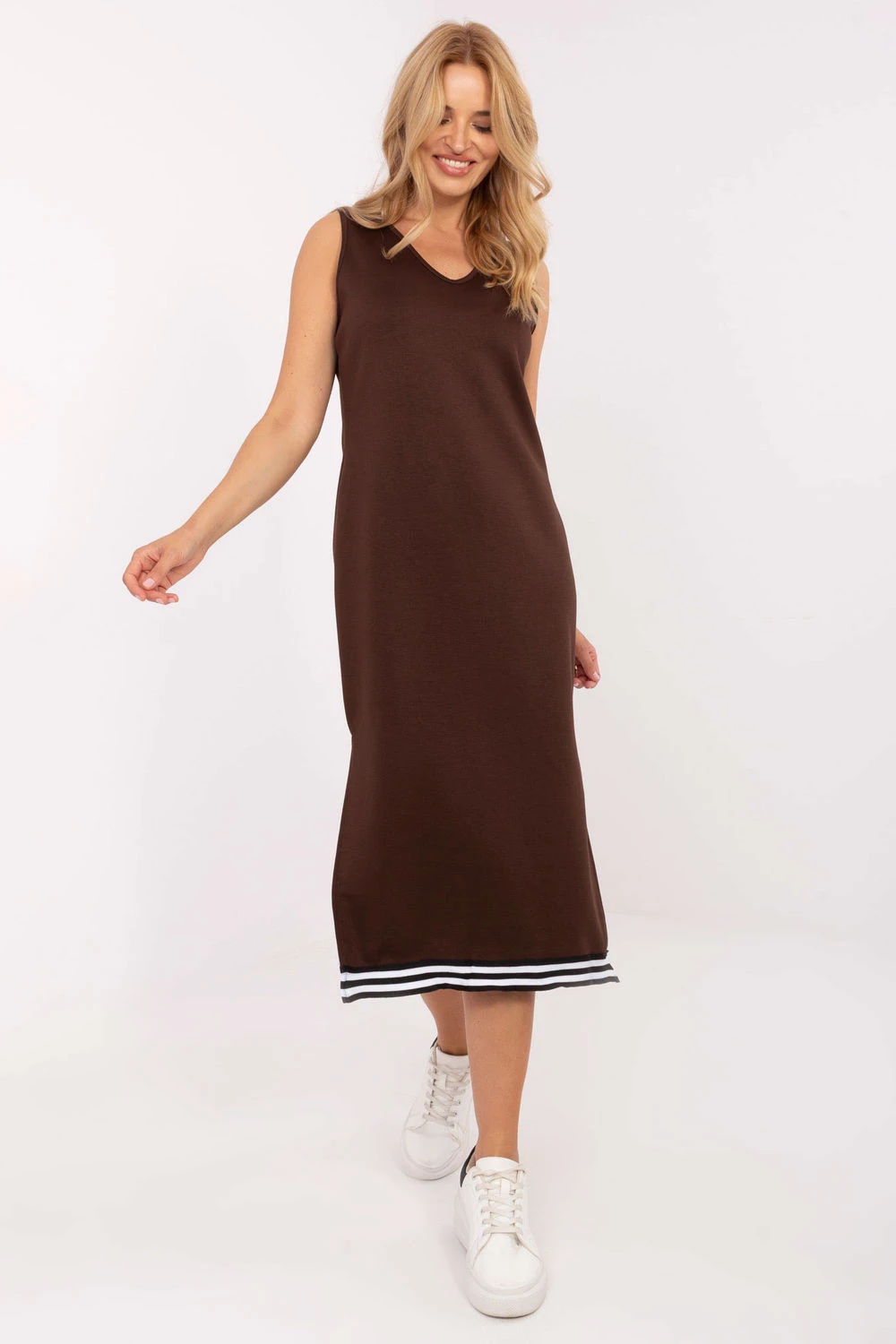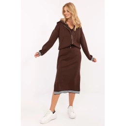 Dámský set ve stylu casual je ideální nabídkou na každý den, spojující pohodlí a ženský charakter. Vyrobený z materiálu typu měkké maslo (viskóza s přídavkem elastanu) okouzluje svou měkkostí, jemností a výjimečným pocitem při dotyku. Mikina s kapucí zapínána na zip má dlouhé rukávy, praktické kapsy a ozdobné manžety, které dodávají celku sportovní nádech. Šaty s ozdobným zakončením v délce midi, s širokými ramínky a výstřihem do V, skvěle ladí s mikinou, vytvářejíce souvislý a módní outfit. Set se hodí do každodenních kombinací, zaručující pohodlí a volnost pohybu, a zároveň stylový a moderní vzhled.