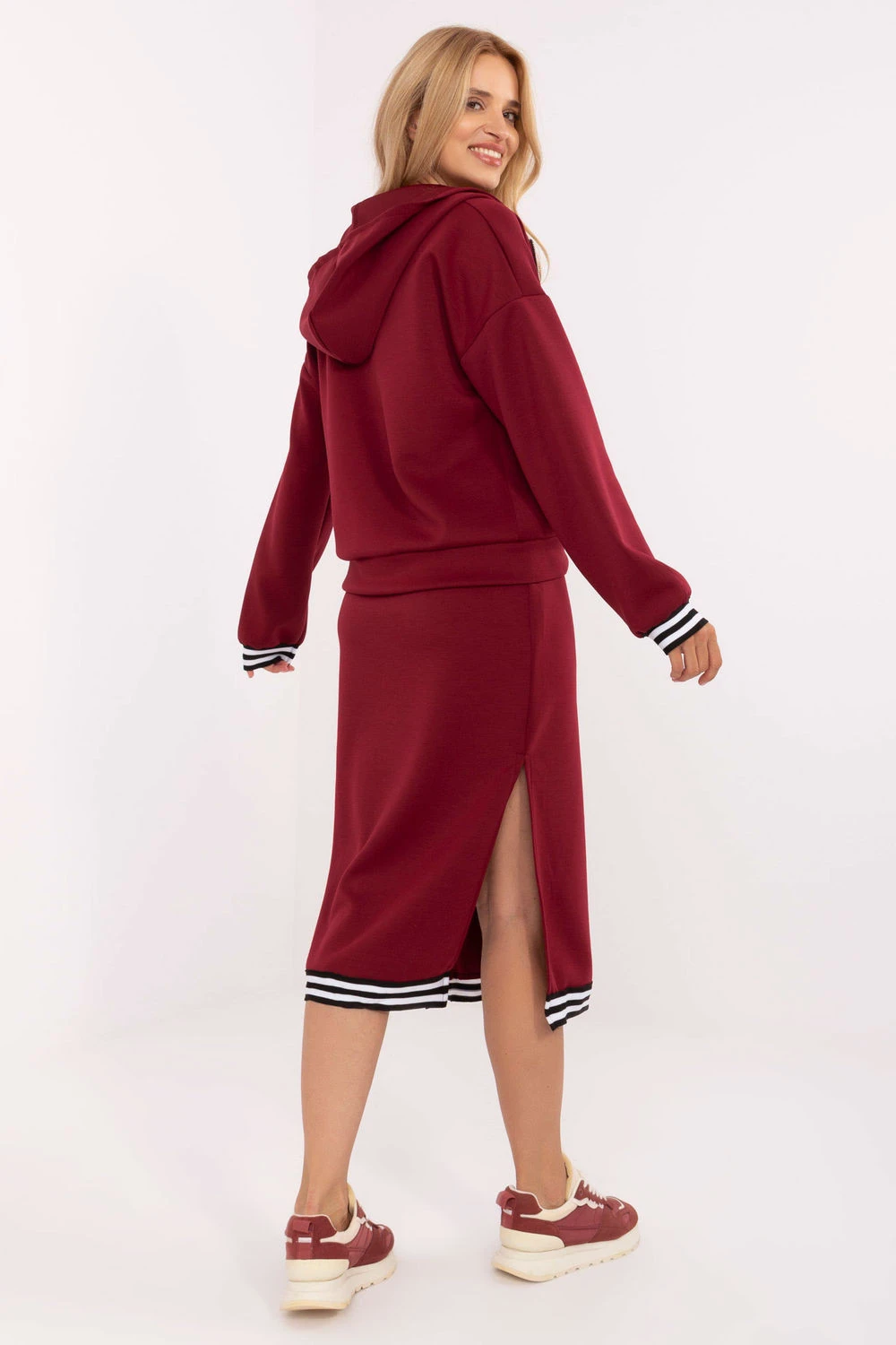 Dámský komplet ve stylu casual je ideální volbou na každodenní nošení, spojující pohodlí a ženský charakter. Vyrobený z materiálu typu měkké maslo (viskóza s přídavkem elastanu) okouzluje svou jemností, něhou a výjimečným pocitem při dotyku. Mikina s kapucí se zipem má dlouhé rukávy, praktické kapsy a ozdobné pružiny na manžetách, které dodávají celku sportovní nádech. Šaty s ozdobným zakončením midi délky, s širokými ramínky a výstřihem do srdce, skvěle ladí s mikinou, vytvářejíce souvislý a moderní vzhled. Tento komplet se hodí do každodenních outfitů, zaručuje pohodlí a volnost pohybu, a zároveň stylový a moderní vzhled.
