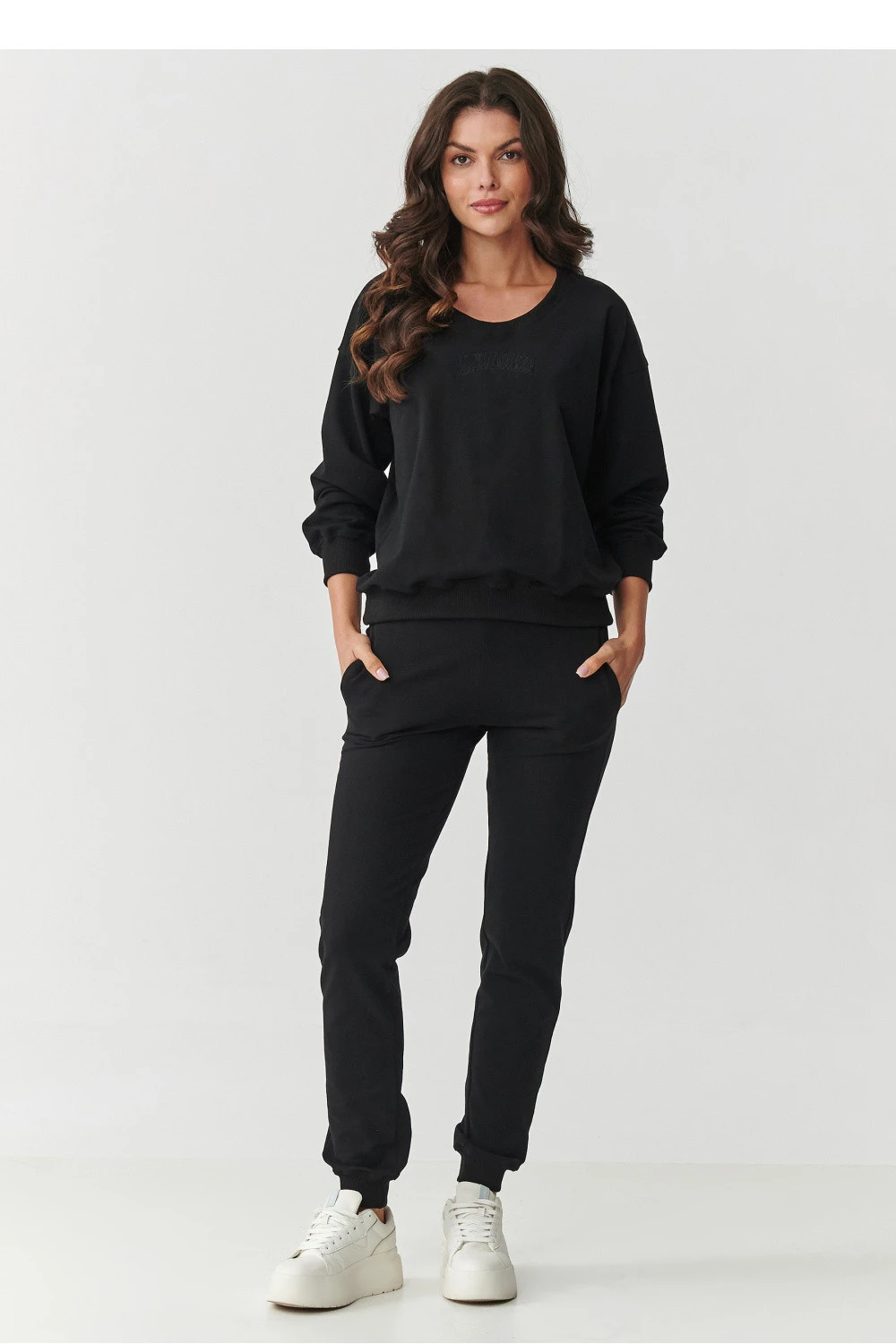 Tento dámský teplákový set je ideální kombinací pohodlí a stylového každodenního vzhledu. Vyrobený z vysoce kvalitního materiálu obsahujícího 95% bavlnu a 5% elastanu, poskytuje měkkost, pružnost a prodyšnost, díky čemuž se skvěle hodí po celý rok. Mikina má volný a pohodlný střih s obnovenou linií ramen, co jí dodává moderní charakter a skvěle padne na každé postavě. Na přední straně je umístěné malé vyšívané logo, které decentně zdůrazňuje značkový charakter setu. Kalhoty s elastickým pasem a pohodlnými bočními kapsami jsou ideální volbou na každý den, kombinující funkčnost s ženským střihem. Nohavice jsou zakončeny lemy, díky čemuž se dobře drží na svém místě a zdůrazňují nohy. Tento set se skvěle hodí jak jako domácí, tak městský outfit. Minimalistický design, perfektní střih a pohodlí na každý den jsou povinným prvkem moderního šatníku!